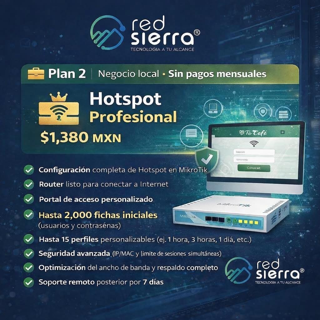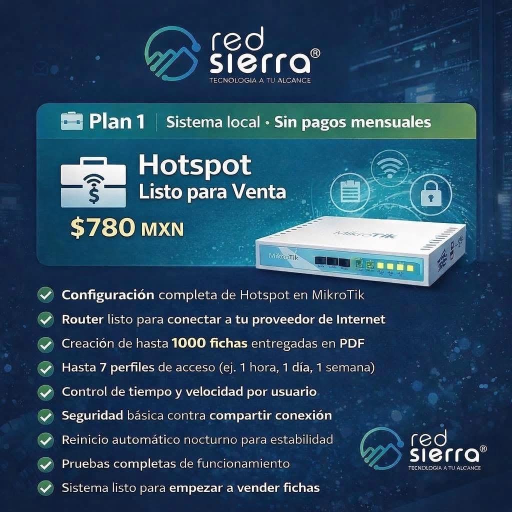 Hotspot Profesional – Plan 2 | Venta de Internet por Fichas (Sistema Local)