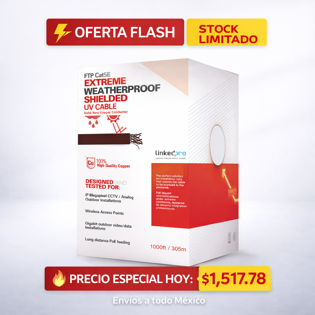 Bobina de cable de 305 m, Cat5e , FTP, blindado, color negro, UL, para aplicaciones en video vigilancia, redes de datos. Uso en Intemperie