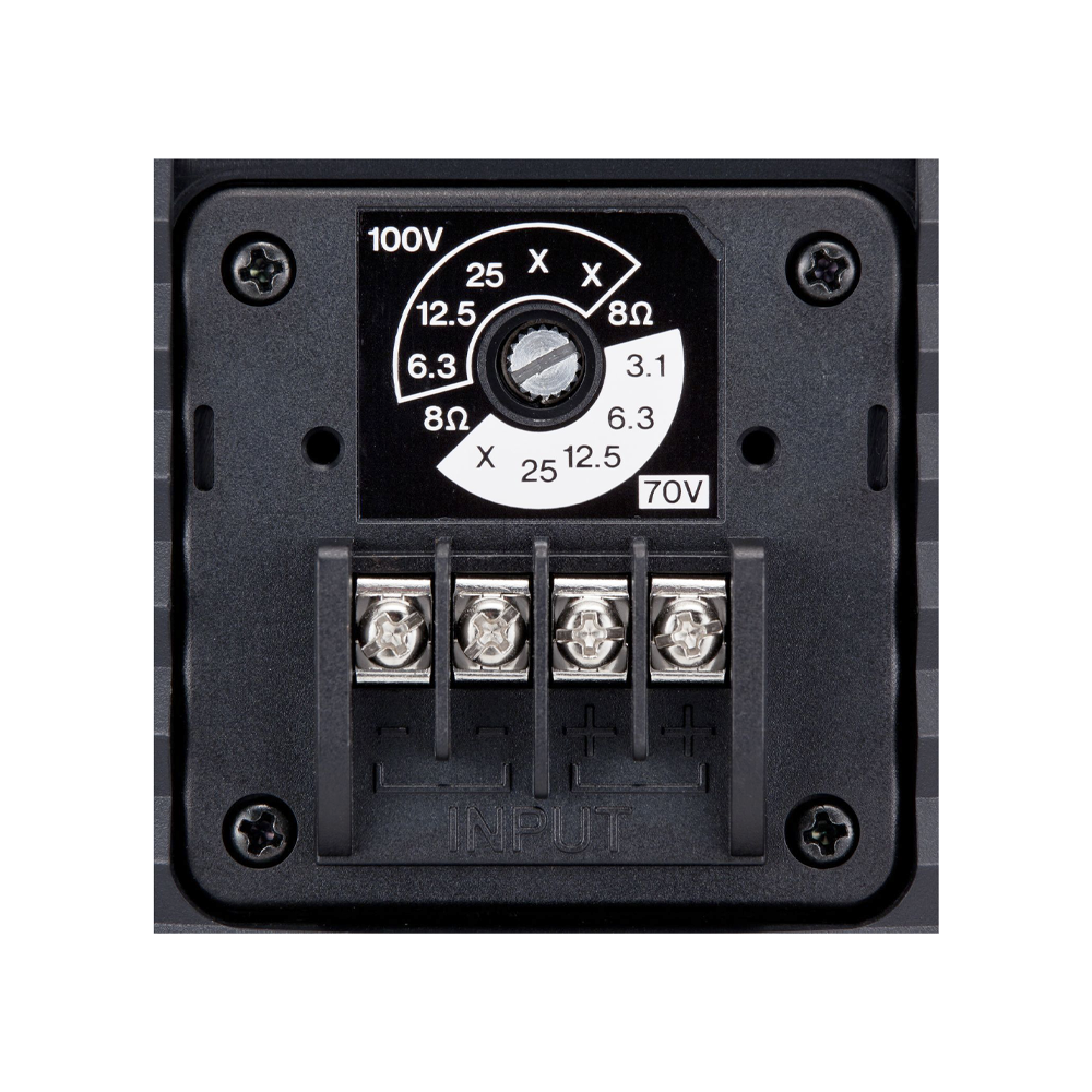 - Conexiones del transformador: 100 V @ 25W, 12.5W, 6.3W | 70 V @ 25W, 12.5W, 6.3W, 3.1W