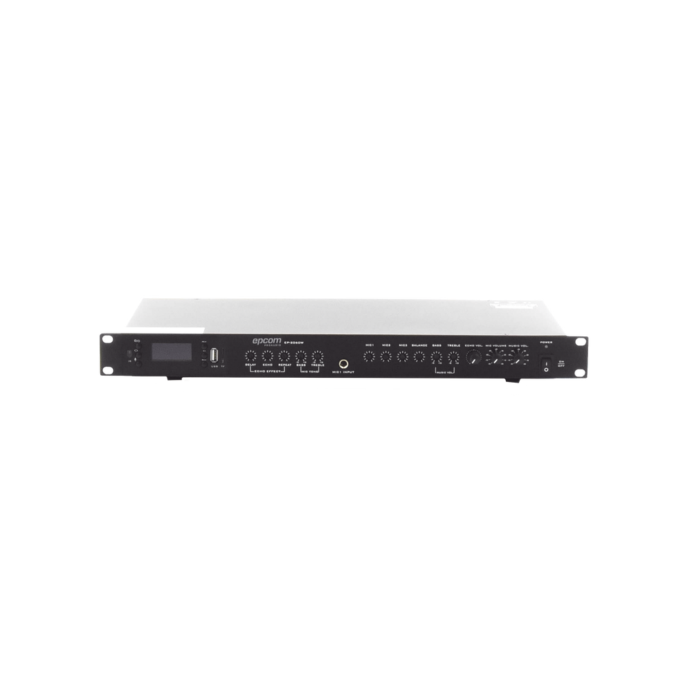 Automatización e IntrusiónAmplificador de Audio | 2 x 60W | Baja Impedancia 4 – 8Ω | Reproductor Bluetooth, USB, SD | Efectos Integrados Delay, Echo, Repeat