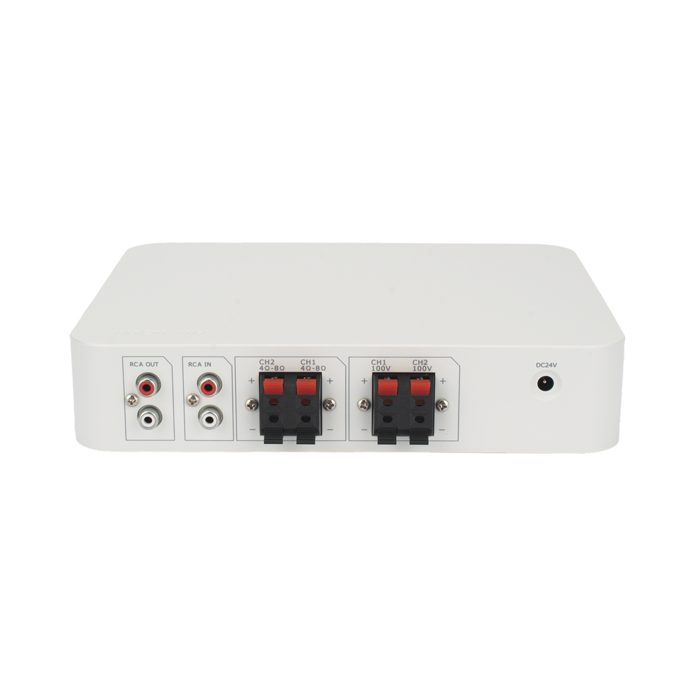 – Compatible con bocinas de alta impedancia 70/100V (Hikvision, Epcom Pro Audio y Truaudio)