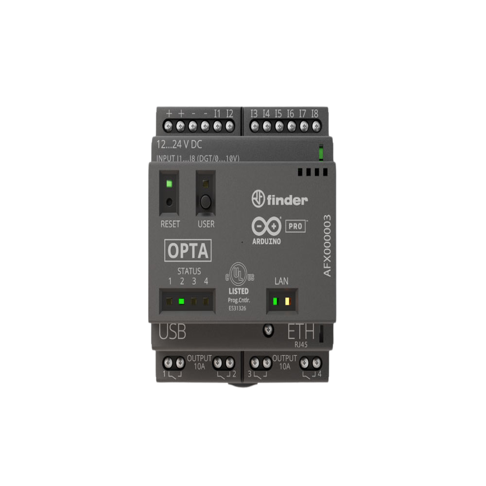 PLC Industrial Arduino Opta / Micro PLC IoT / STM32H747XI Dual-Core / 8 Entradas Analógicas-Digitales / 4 Relés 10A / Ethernet-RS485-WiFi-Bluetooth / IP20 / Certificaciones cULus-ENEC-FCC-CE