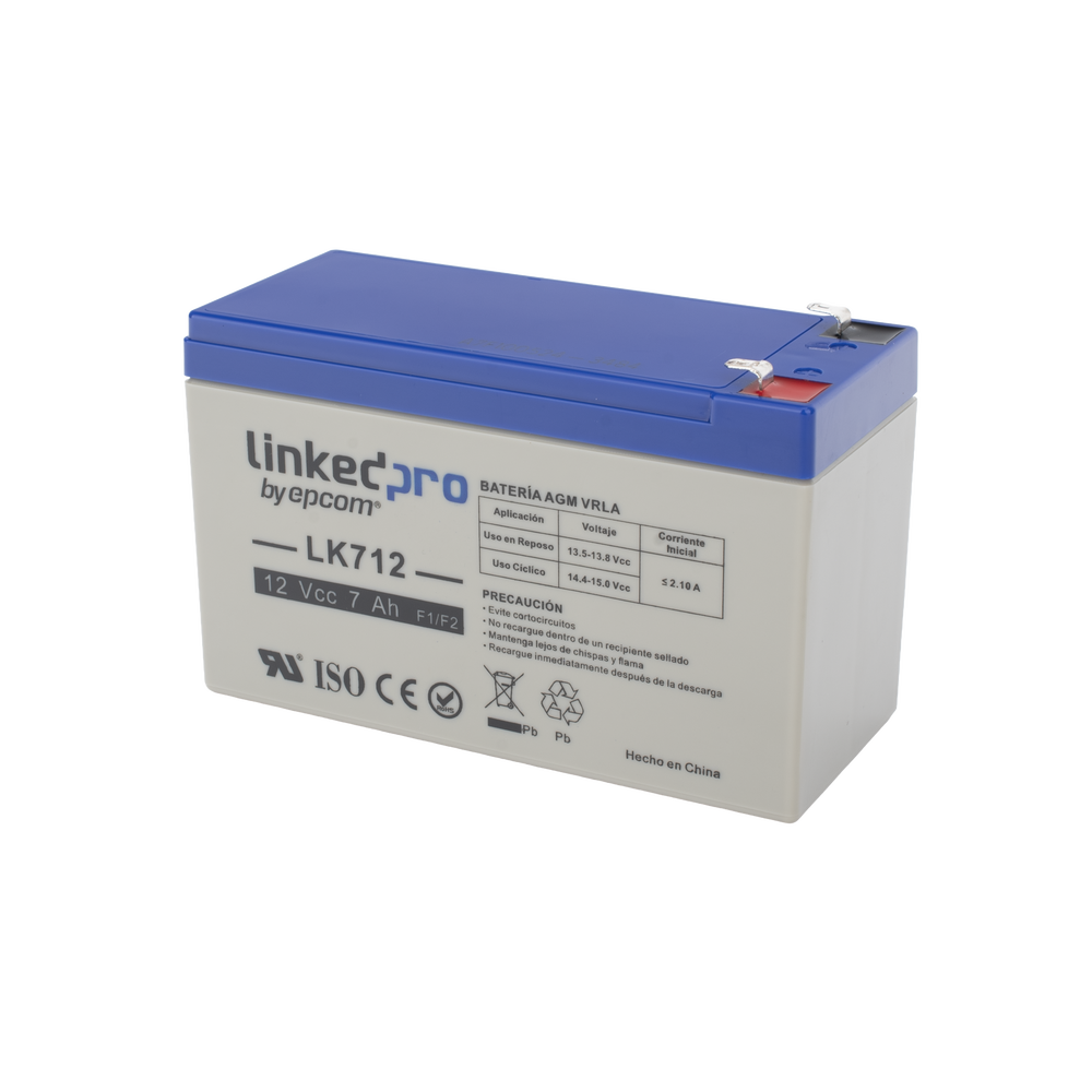 La serie de baterías LINKEDPRO, están diseñadas con tecnología AGM-VRLA (Fibra de vidrio absorbente, con válvulas de regulación), placas de alto rendimiento y electrólito para proporcionar una salida de energía adicional. Las baterías de la serie LINKEDPRO BY EPCOM son baterías de respaldo para equipos electrónicos, con una vida útil de diseño flotante de 5 años a 25°C, están aprobadas por UL (MH62092).