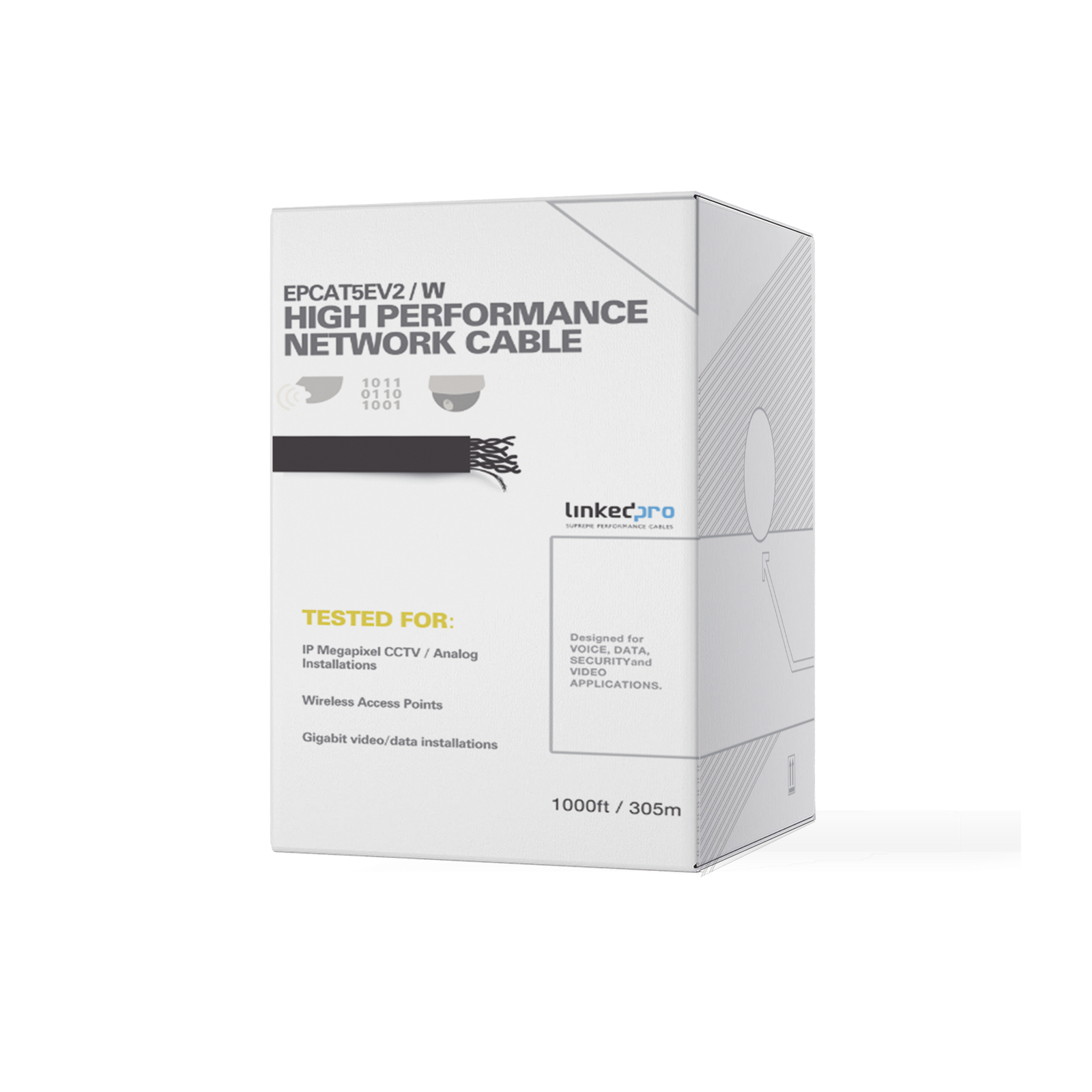 Bobina de 305 m (1000 ft) Cat5e, aleación de cobre y aluminio ( CCA ) color blanco, uso interior