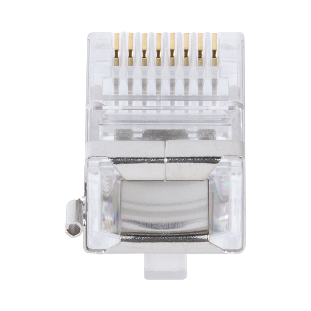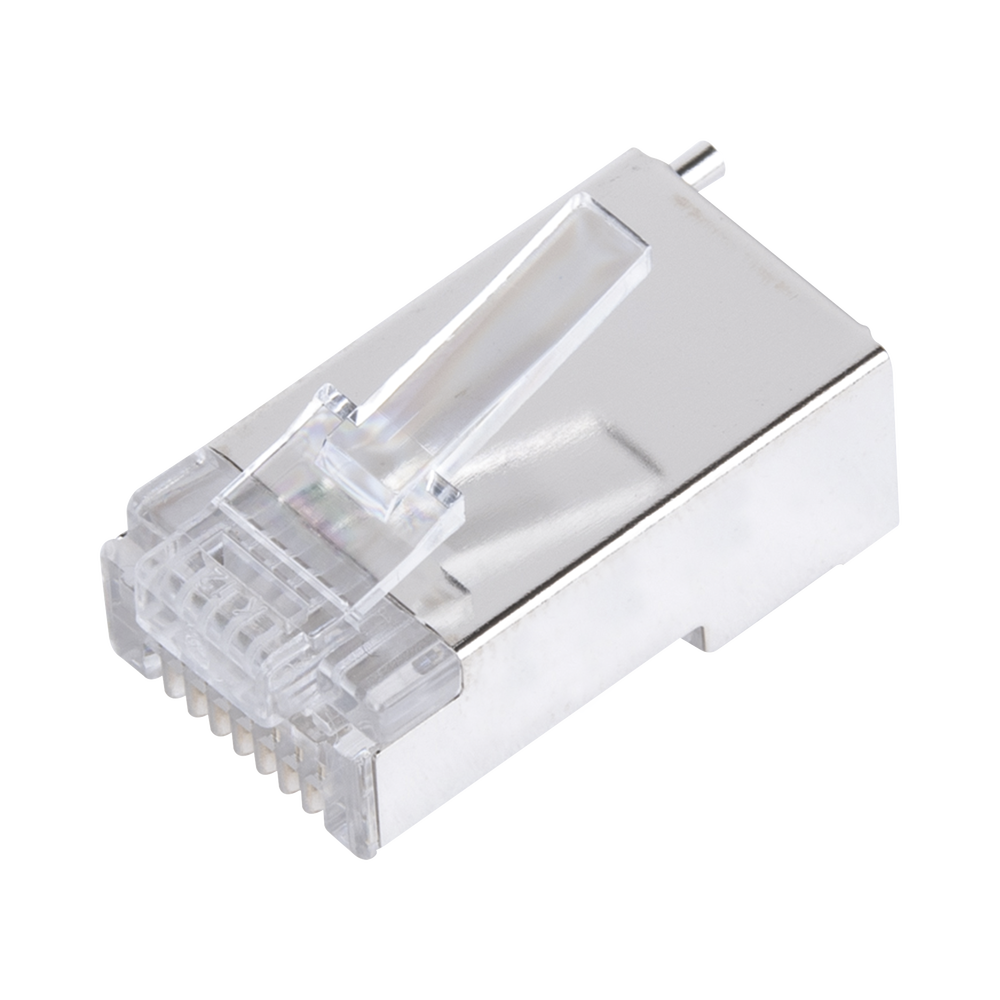 Bote con 100 Piezas de Plug Modular RJ45 Cat5e Blindado, Chapado de Oro a 30 Micras para Durabilidad Extrema con Pin de Tierra