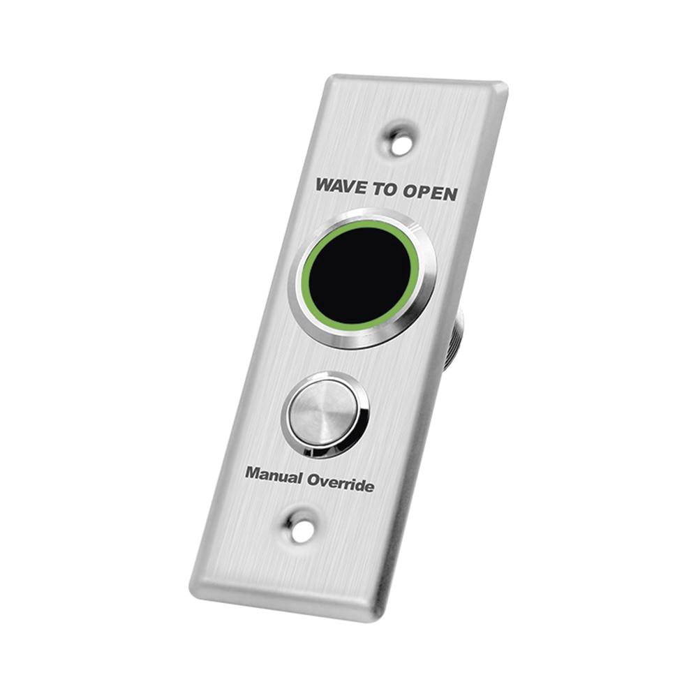 Botón de Salida Doble con Aro Iluminado / IP65 / Diseño Estético Delgado / Temporizador y Distancia Ajustable / Botón Sin Contacto y Botón de Contacto en uno solo