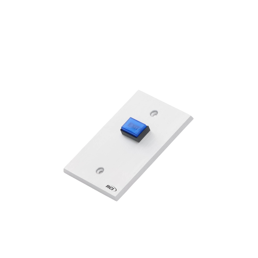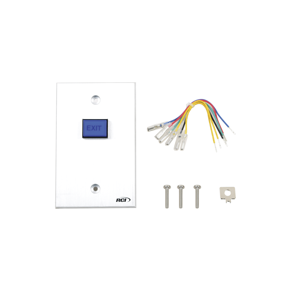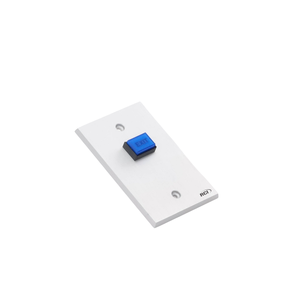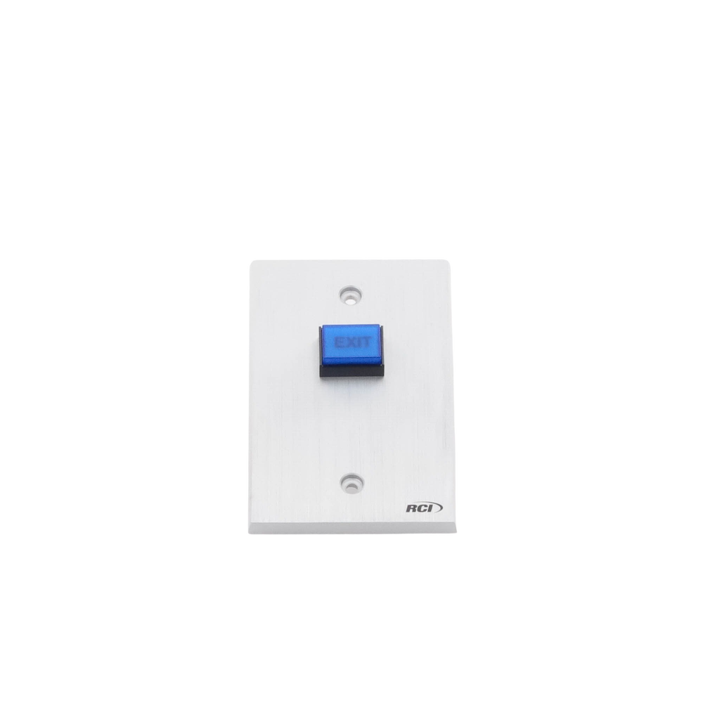 La placa de aluminio extruido de 1/4′ con bordes biselados ofrece alta durabilidad y protección contra robo. El botón azul ‘Exit’ está iluminado con reborde negro y funciona con un foco incandescente de larga duración de 12 Vcc a 24 mA.