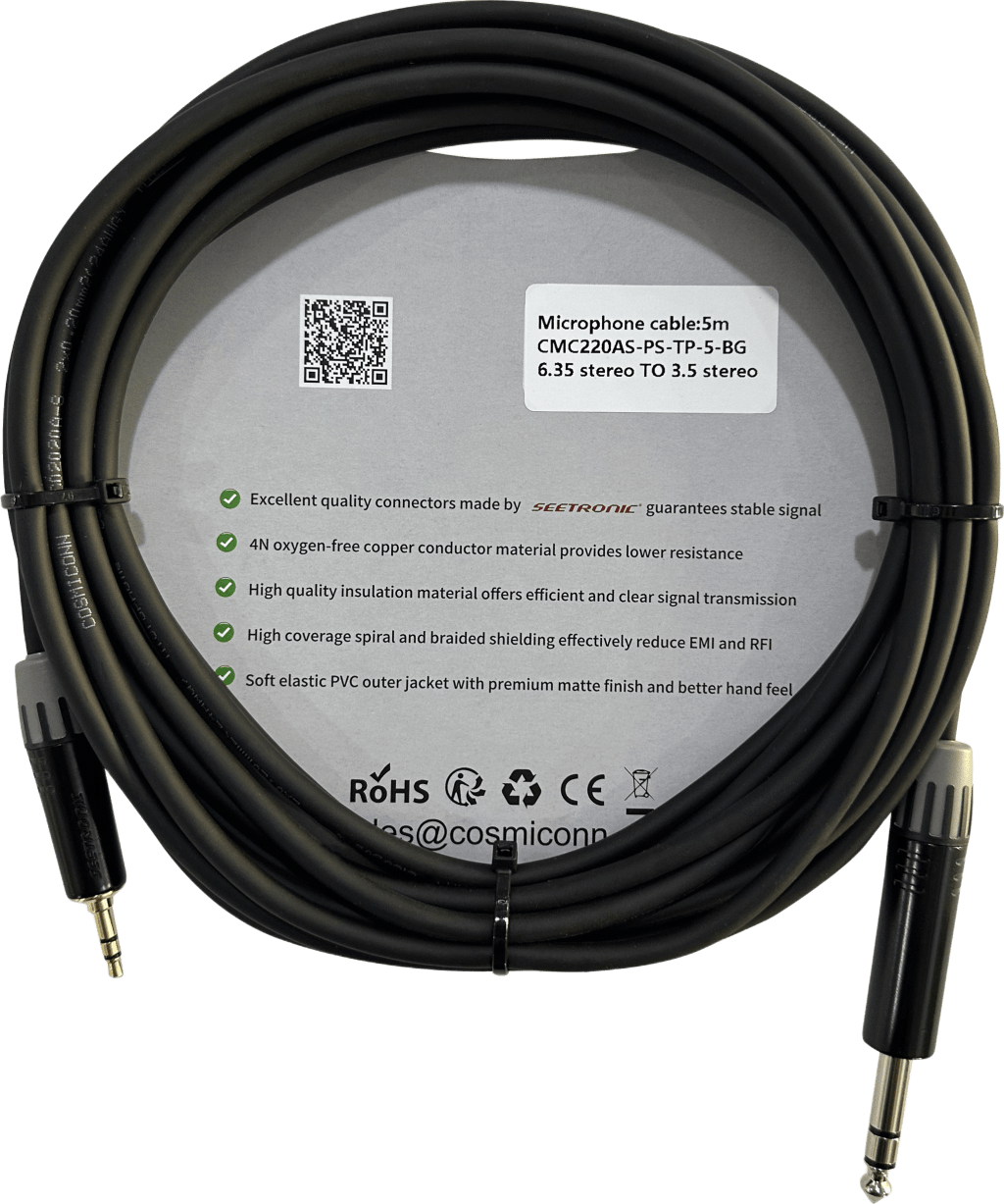 Cable 6.35mm a 3.5mm, conectores color negro MP3X-B – MTP3C-BG, length 5m