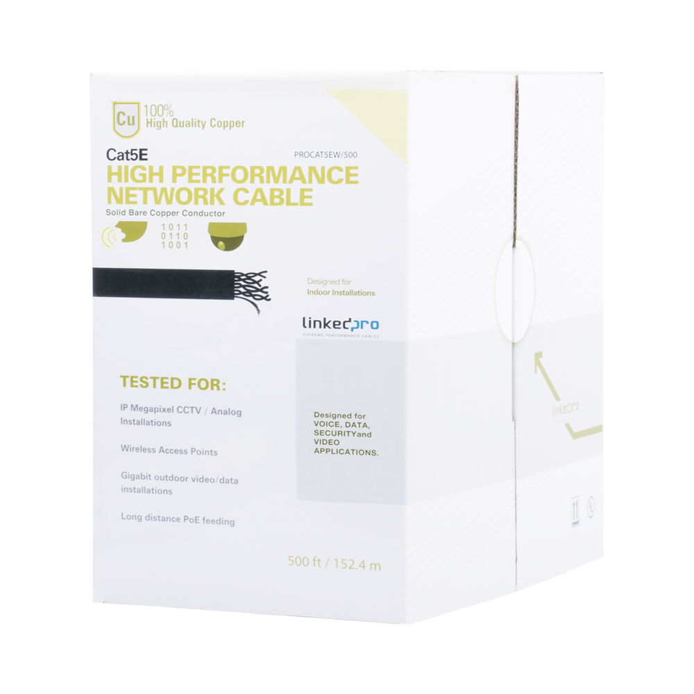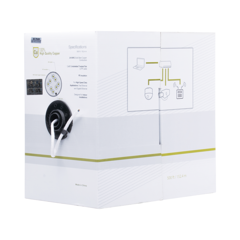 Cable Cat5e de Alto Rendimiento Certificaciones ETL, UL, de 152.5 Metros (500 Pies) de Color Blanco, para Aplicaciones en Video Vigilancia, Redes de Datos. Uso Interior.