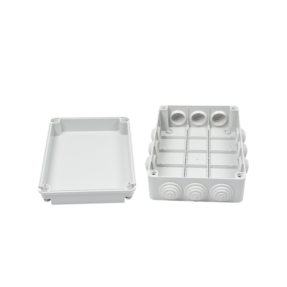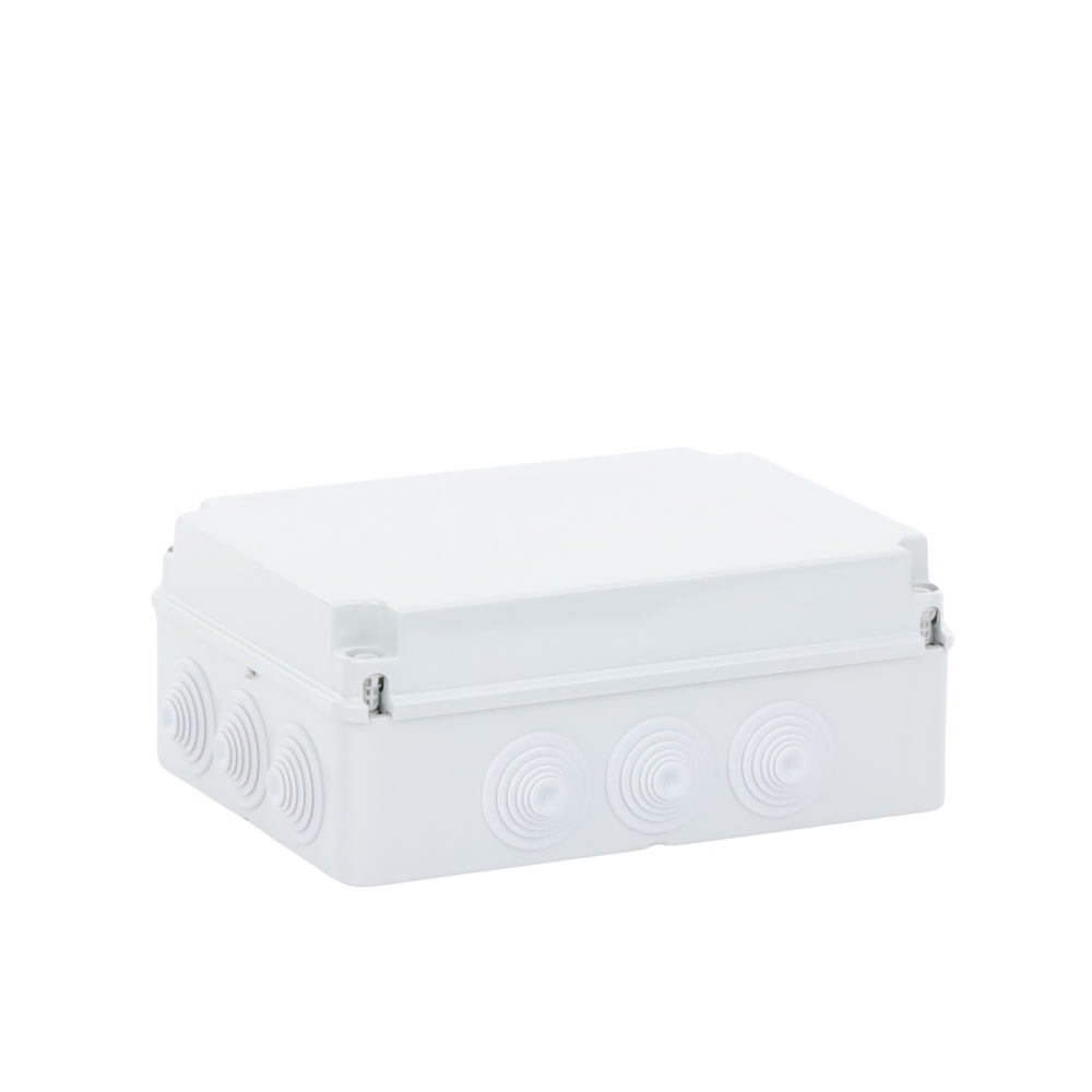 Caja Estanca de PVC Para Derivación y Conexión, 12 Entradas, Tapa Atornillada, 300x220x120 mm (Área interna), Uso Exterior IP55, Material que no Propaga el Fuego y Libre de Hálogenos