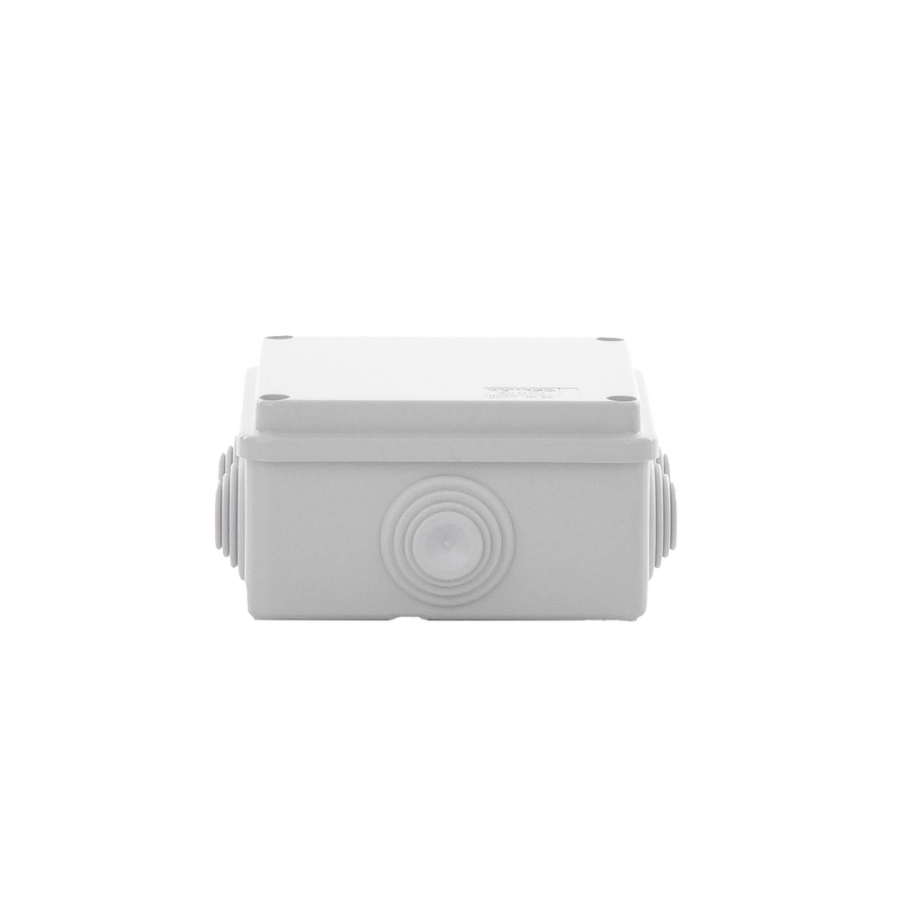 Caja Estanca de PVC Para Derivación y Conexión, 6 Entradas, Tapa Atornillada,100x100x50 mm (Área Interna), Uso Exterior IP55, Material que no Propaga el Fuego y Libre de Hálogenos