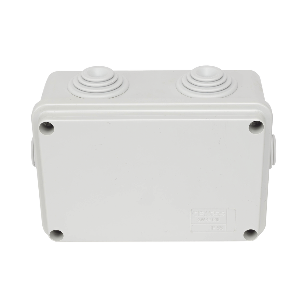 Caja Estanca de PVC Para Derivación y Conexión, 6 Entradas, Tapa Atornillada, 120x80x50 mm (Área interna), Uso Exterior IP55, Material que no Propaga el Fuego y Libre de Hálogenos