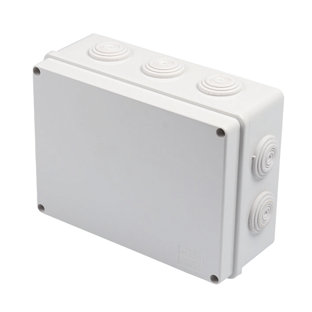 Caja Derivación-Conexión de Plástico (140 X 190 X 76 mm) con 10 Glándulas de Goma. Para Instalaciones Comerciales, Residenciales e Industriales. Incluye Tornillería para su Tapa. Funciona También como Registro.
