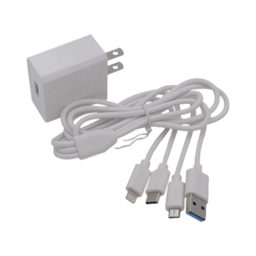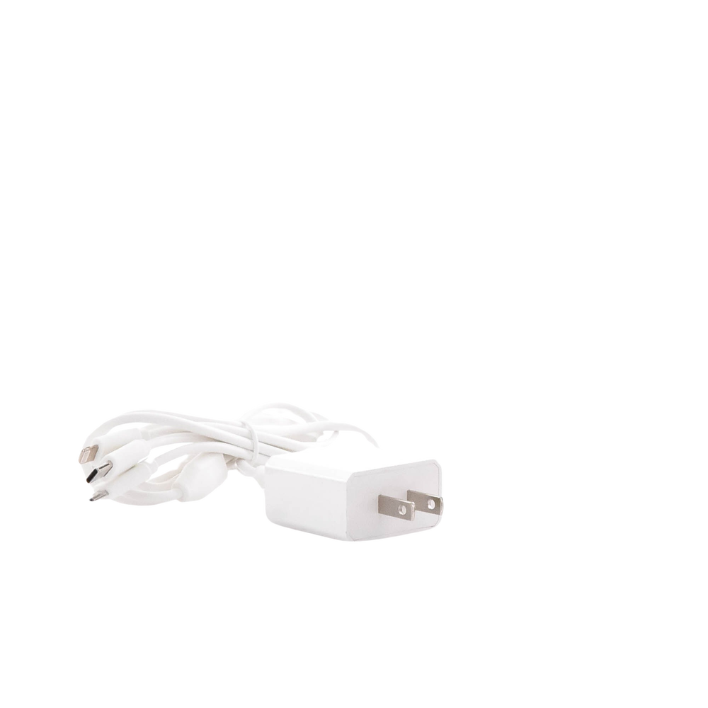 Cargador de pared USB de 5 Vcc 2A / Multi-puertos / USB-C / Micro USB / Tipo C / Lightning (iPhone) / Extensión de cable 1.2 metros