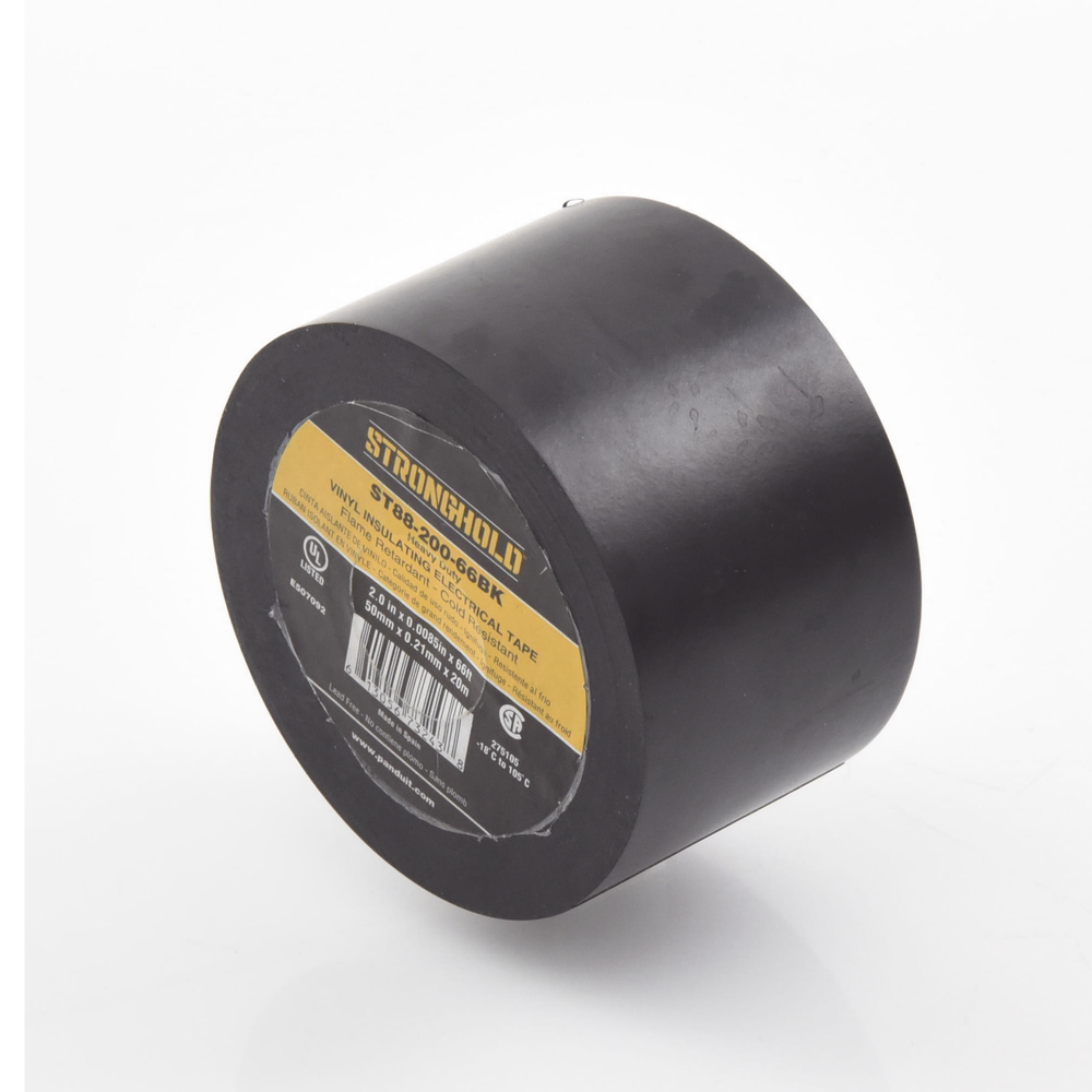 Cinta Eléctrica STRONGHOLD Para Aislar, de PVC, Trabajo Pesado Eléctrico (UV, abrasión, aceite, corrosión), Grosor 0.21 mm (8.5 mil), Ancho 50 mm, y 20 m Largo, Uso Int./Ext., Color Negro. Superior a cinta Super 33