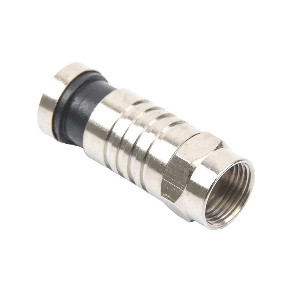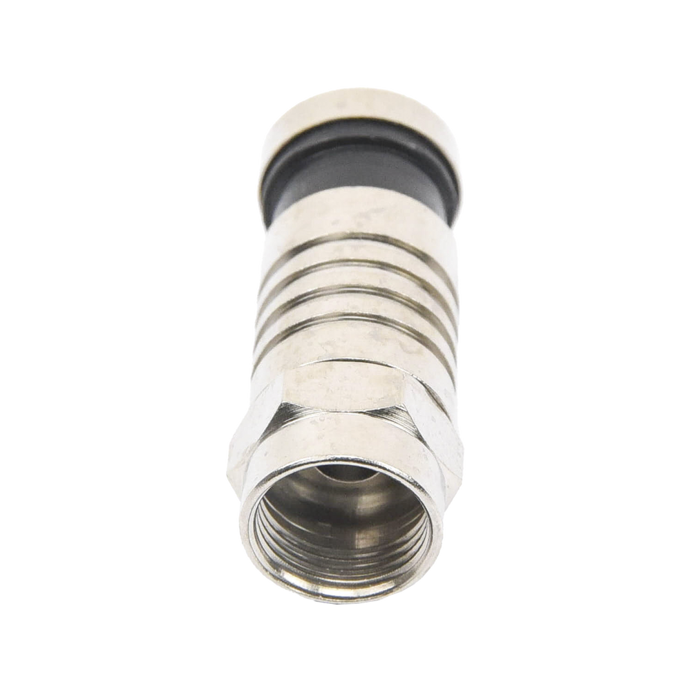Conector F Macho de Compresión para cable RG-59, Cuerpo de Bronce Niquelado.