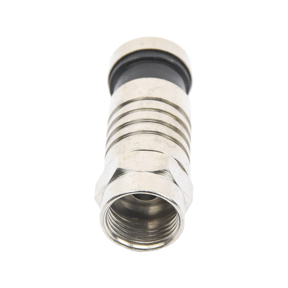 Conector F Macho de Compresión para cable RG-6, Cuerpo de Bronce Niquelado.