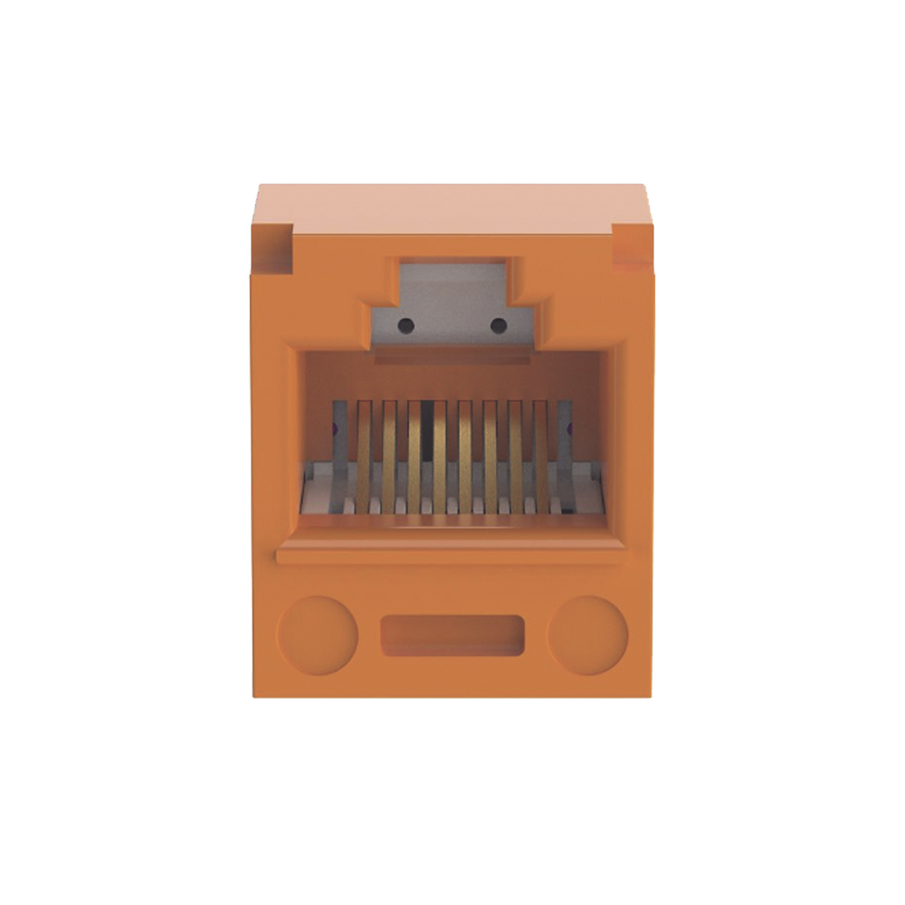 El módulo de conector UTP Categoría 5e/Clase D de 8 posiciones, se termina en cable de 4 pares 22 – 24 AWG de par trenzado sin blindaje de 100 ohms y no requiere el uso de una herramienta de impacto. Los módulos de conector UTP usan un método de terminación de movimiento hacia adelante para optimizar el rendimiento al mantener la geometría del par de cables mientras se elimina el destrenzado del conductor. La tapa de terminación esta codificada por color blanco para designar el rendimiento de la Categoría 6 e incluye una etiqueta universal codificada para los esquemas de cableado T568A y T568B.