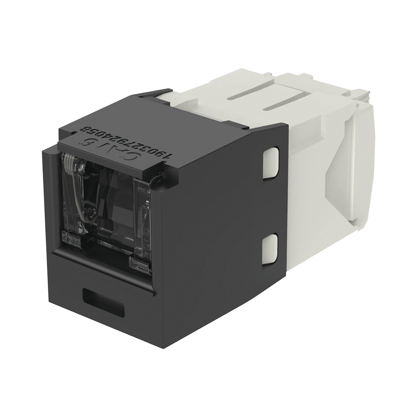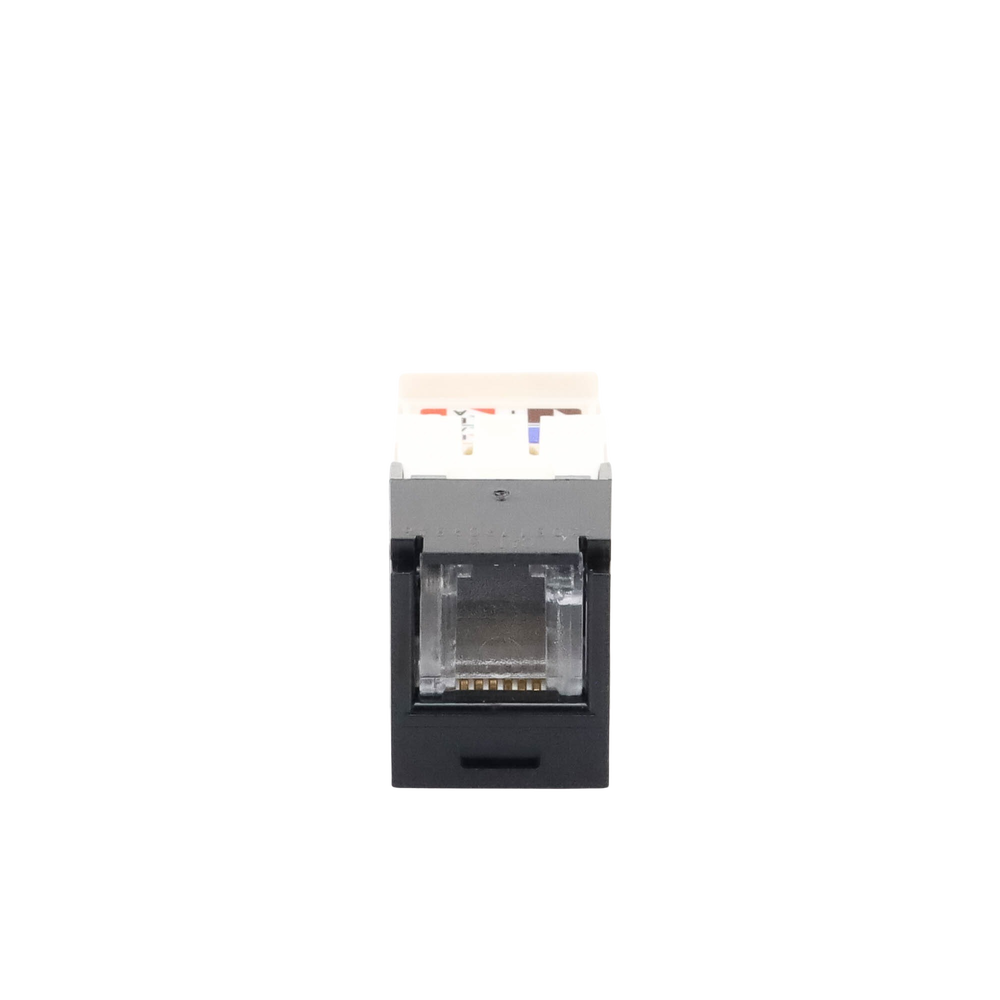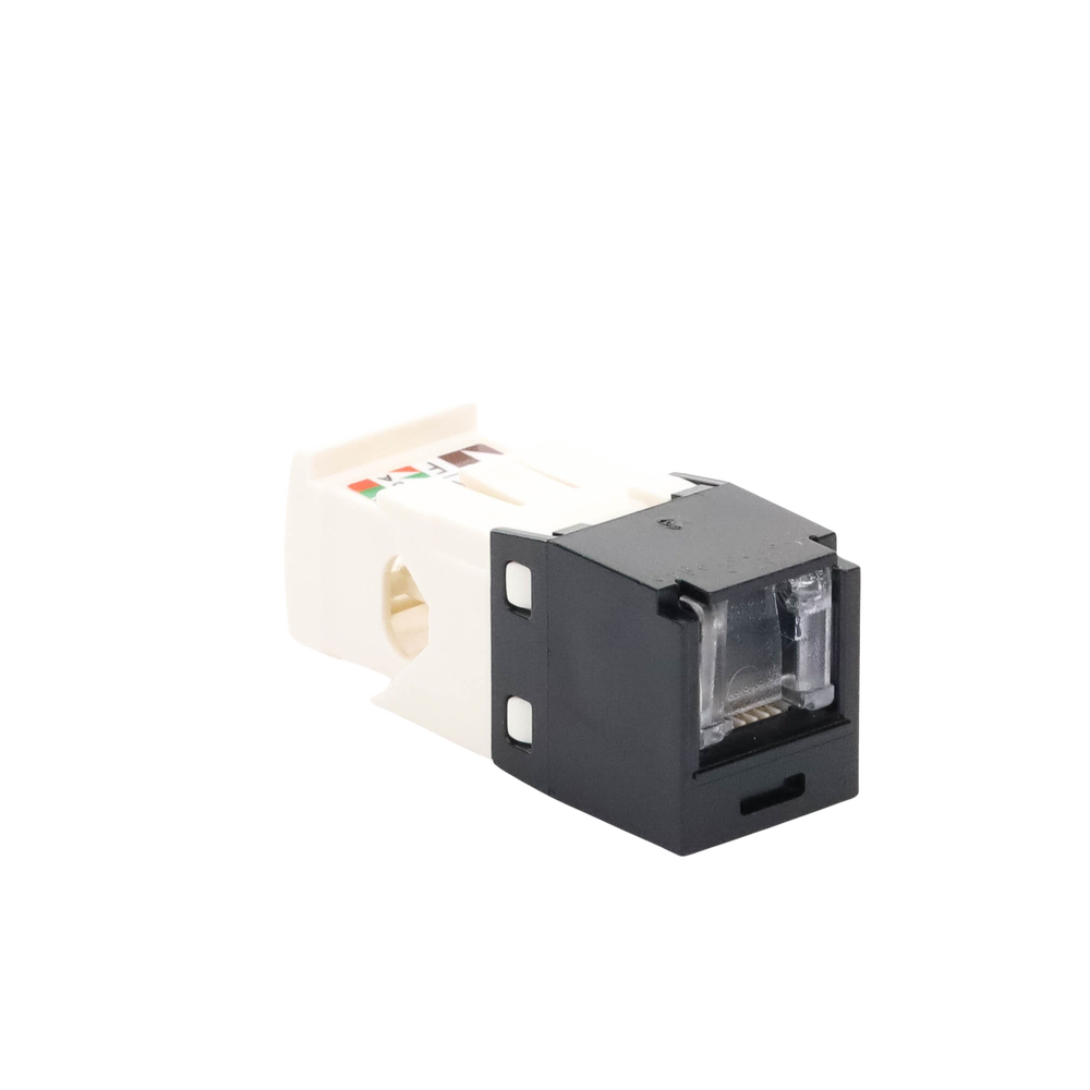 El módulo de conector UTP Categoría 6/Clase E de 8 posiciones, se termina en cable de 4 pares 22 – 26 AWG de par trenzado sin blindaje de 100 ohms y no requiere el uso de una herramienta de impacto. Los módulos de conector UTP usan un método de terminación de movimiento hacia adelante para optimizar el rendimiento al mantener la geometría del par de cables mientras se elimina el destrenzado del conductor. La tapa de terminación esta codificada por color blanco para designar el rendimiento de la Categoría 6 e incluye una etiqueta universal codificada para los esquemas de cableado T568A y T568B.
