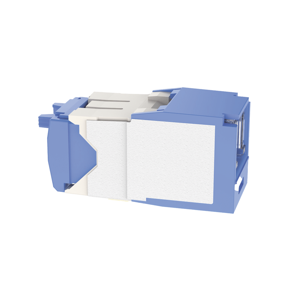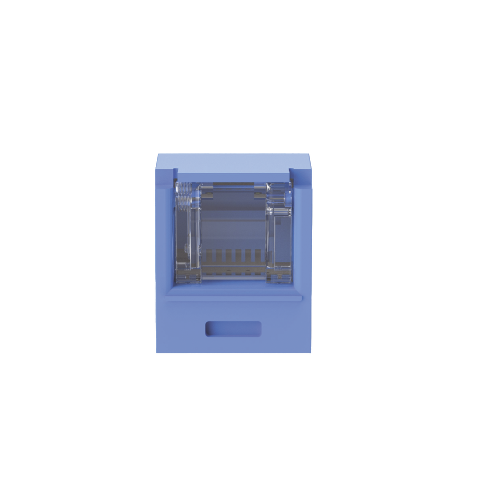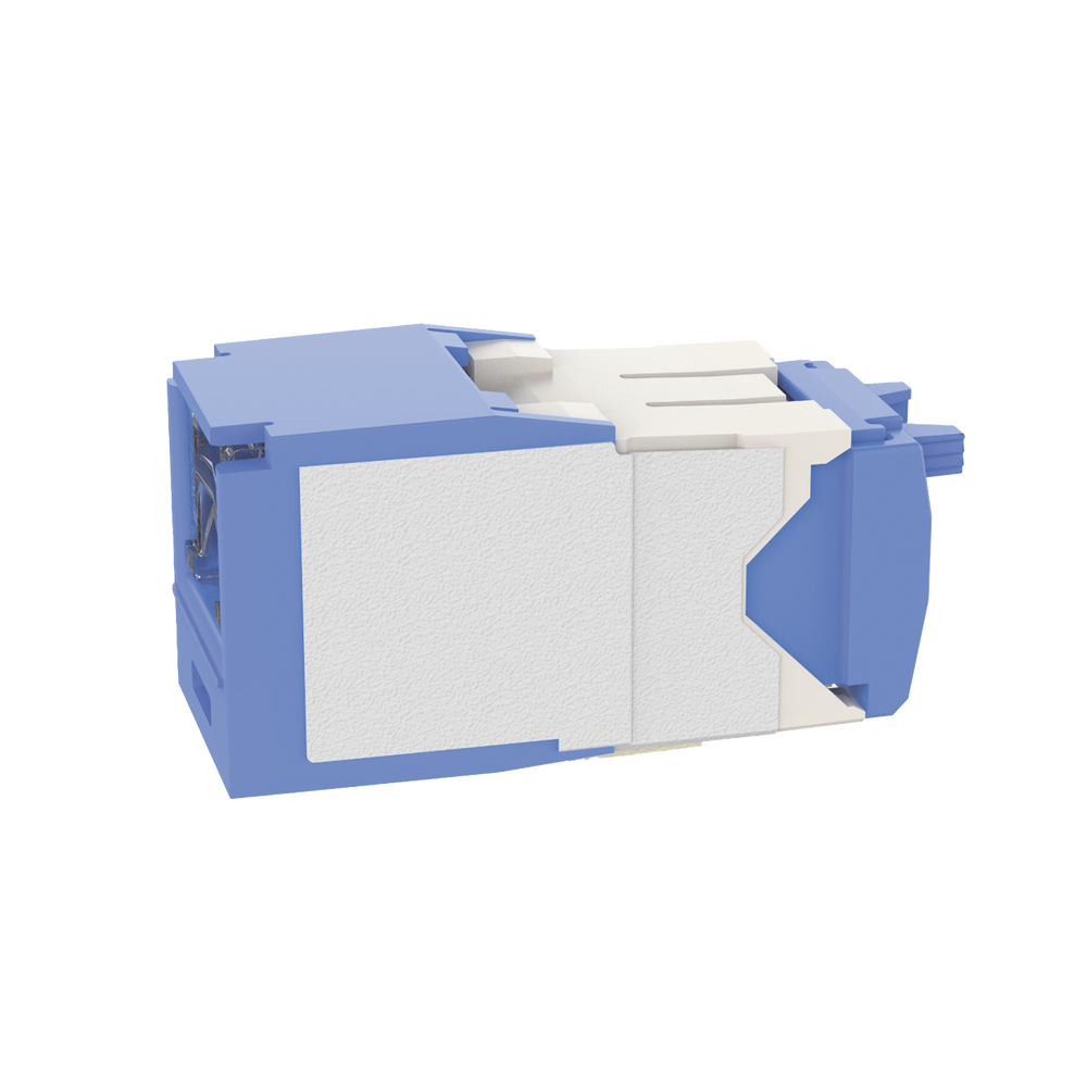 El módulo de conector UTP Categoría 6A/Clase EA de 8 posiciones, se termina en cable de 4 pares 22 – 26 AWG de par trenzado sin blindaje de 100 ohms y no requiere el uso de una herramienta de impacto. Los módulos de conector UTP usan un método de terminación de movimiento hacia adelante para optimizar el rendimiento al mantener la geometría del par de cables mientras se elimina el destrenzado del conductor. La tapa de terminación esta codificada por color blanco para designar el rendimiento de la Categoría 6A e incluye una etiqueta universal codificada para los esquemas de cableado T568A y T568B.
