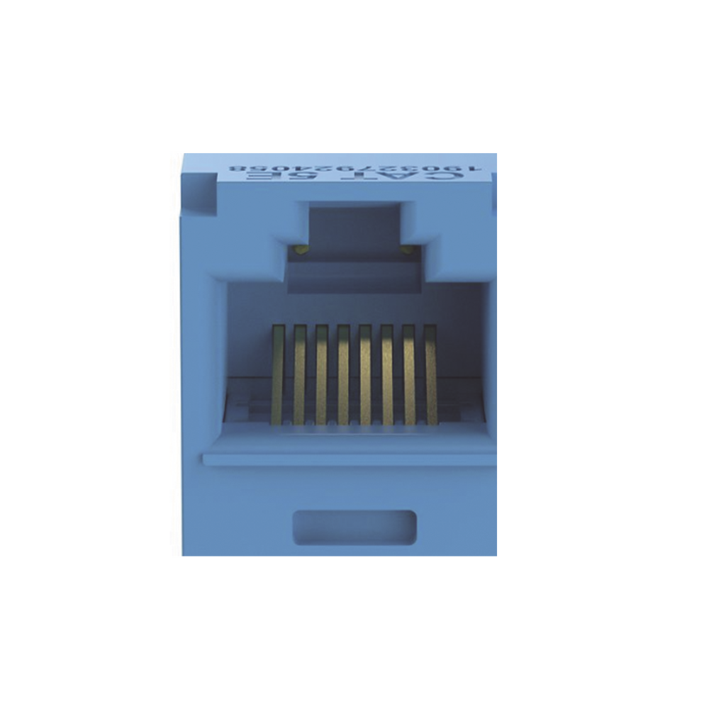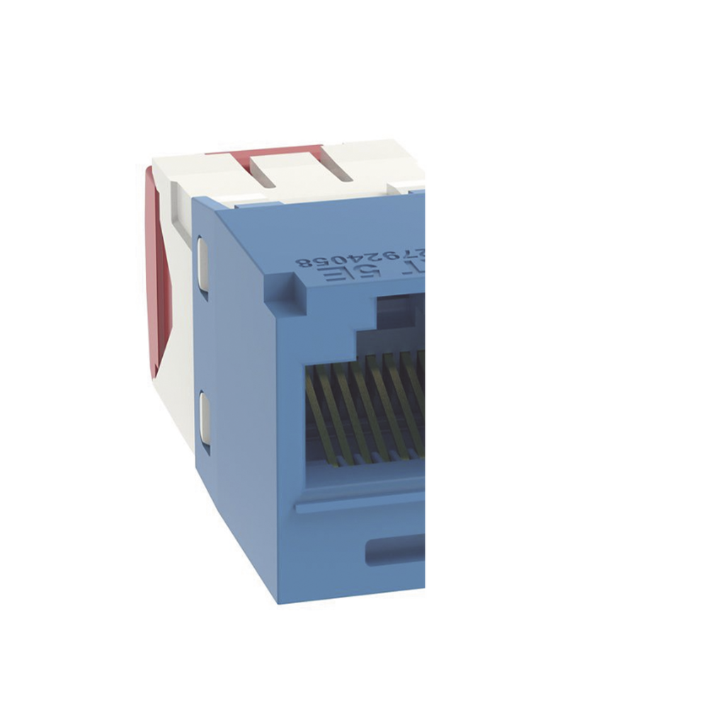 El módulo de conector UTP Categoría 5e/Clase D de 8 posiciones, se termina en cable de 4 pares 22 – 24 AWG de par trenzado sin blindaje de 100 ohms y no requiere el uso de una herramienta de impacto. Los módulos de conector UTP usan un método de terminación de movimiento hacia adelante para optimizar el rendimiento al mantener la geometría del par de cables mientras se elimina el destrenzado del conductor. La tapa de terminación esta codificada por color blanco para designar el rendimiento de la Categoría 6 e incluye una etiqueta universal codificada para los esquemas de cableado T568A y T568B.