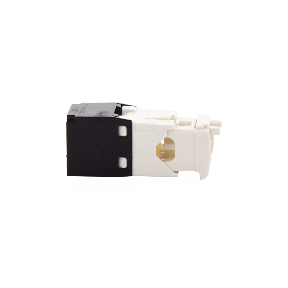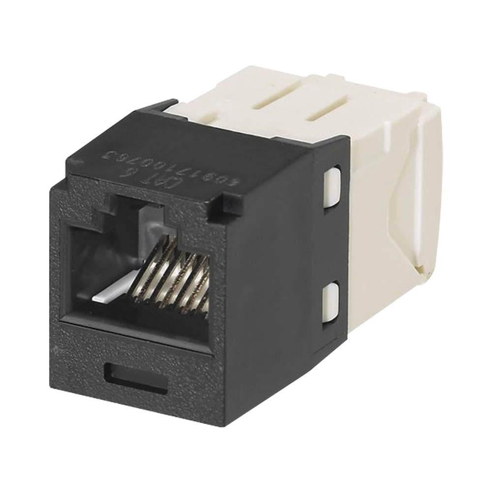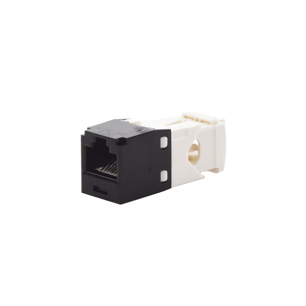 El módulo de conector UTP Categoría 6/Clase E de 8 posiciones, se termina en cable de 4 pares 22 – 26 AWG de par trenzado sin blindaje de 100 ohms y no requiere el uso de una herramienta de impacto. Los módulos de conector UTP usan un método de terminación de movimiento hacia adelante para optimizar el rendimiento al mantener la geometría del par de cables mientras se elimina el destrenzado del conductor. La tapa de terminación esta codificada por color blanco para designar el rendimiento de la Categoría 6 e incluye una etiqueta universal codificada para los esquemas de cableado T568A y T568B.