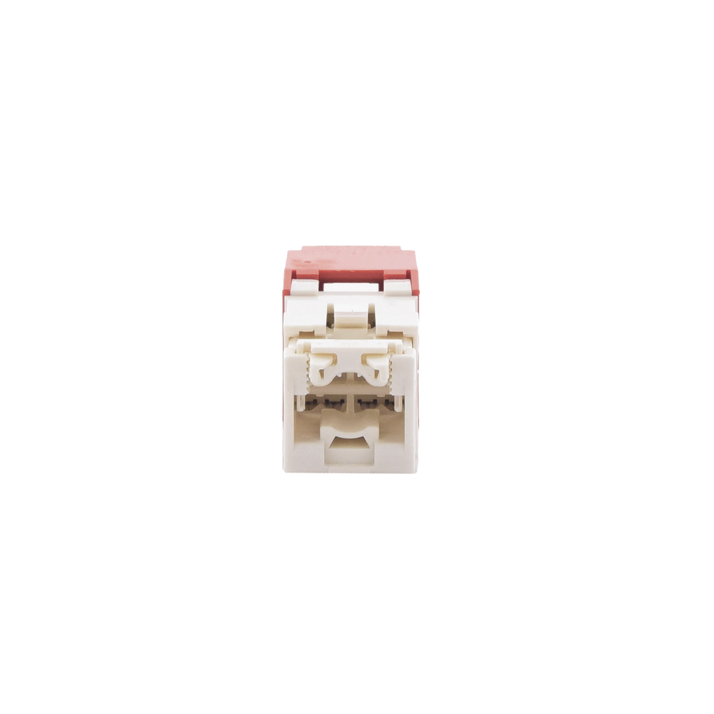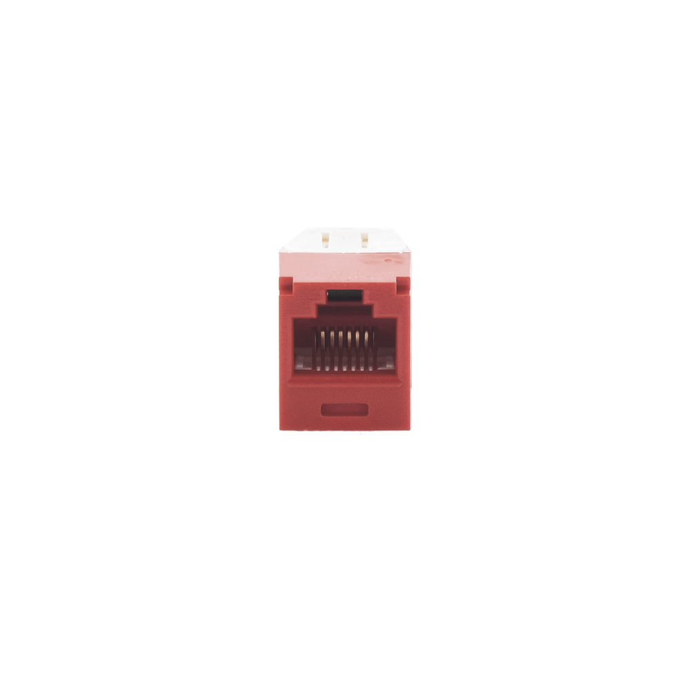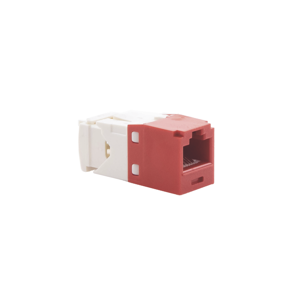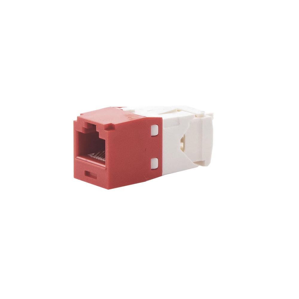 El módulo de conector UTP Categoría 6/Clase E de 8 posiciones, se termina en cable de 4 pares 22 – 26 AWG de par trenzado sin blindaje de 100 ohms y no requiere el uso de una herramienta de impacto. Los módulos de conector UTP usan un método de terminación de movimiento hacia adelante para optimizar el rendimiento al mantener la geometría del par de cables mientras se elimina el destrenzado del conductor. La tapa de terminación esta codificada por color blanco para designar el rendimiento de la Categoría 6 e incluye una etiqueta universal codificada para los esquemas de cableado T568A y T568B.