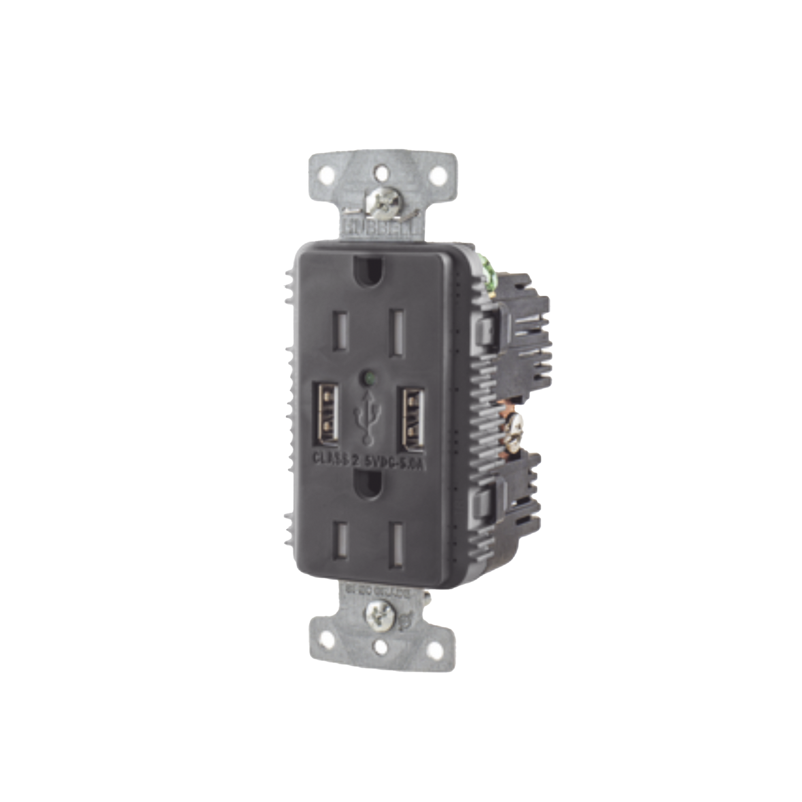 Contacto Dúplex con 2 Puertos USB, 15A 125V, 2 Polos, 3 Hilos, Color Negro.