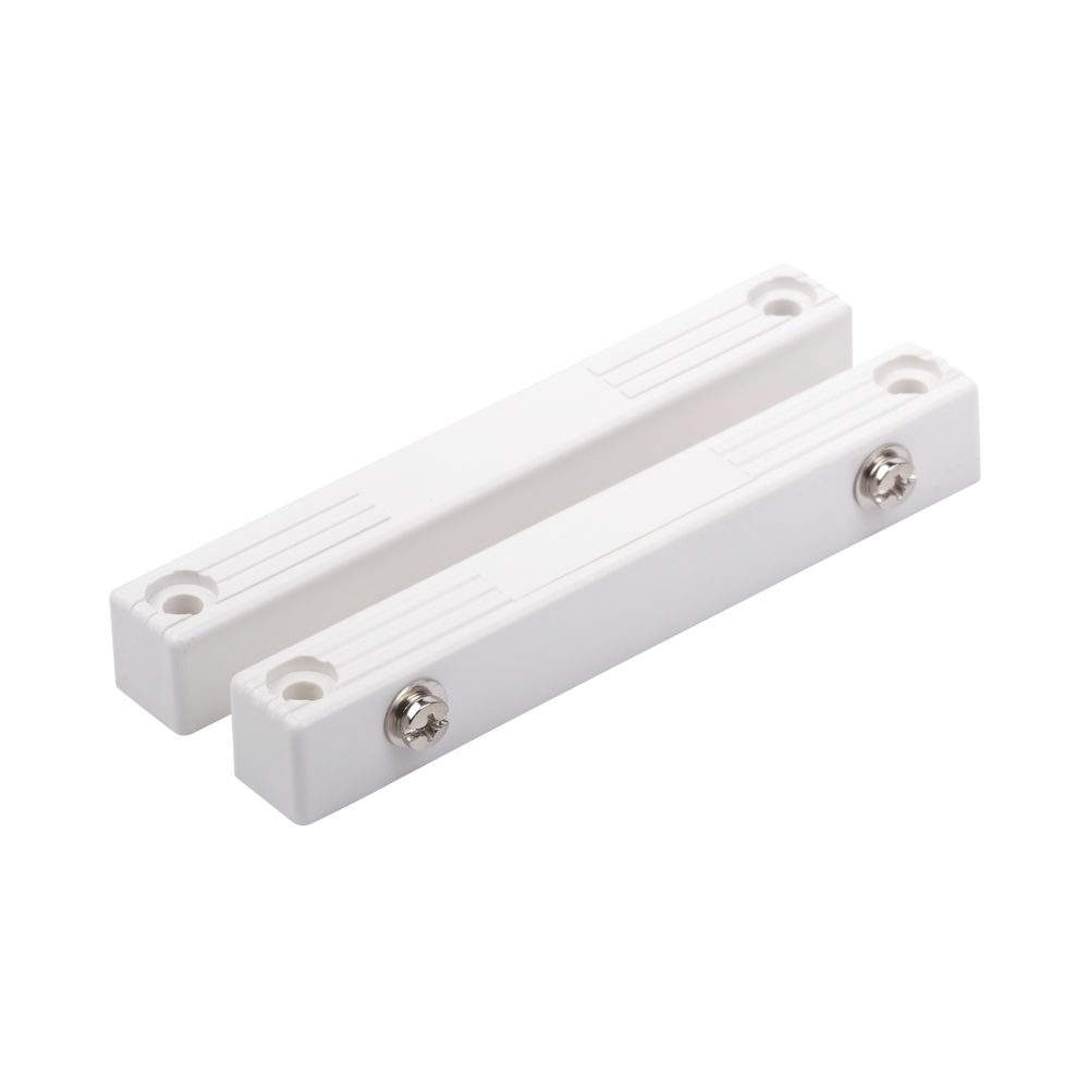 El Sensor magnético para ventanas y puertas consta de un imán y un reedswitch (interruptor magnético). Este sensor funciona como un switch normalmente cerrado (mientras hay campo magnético). Cuando la puerta o ventana se abre, el circuito eléctrico también se abre y es posible detectar la apertura de la misma.