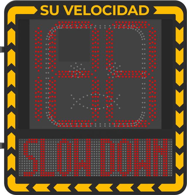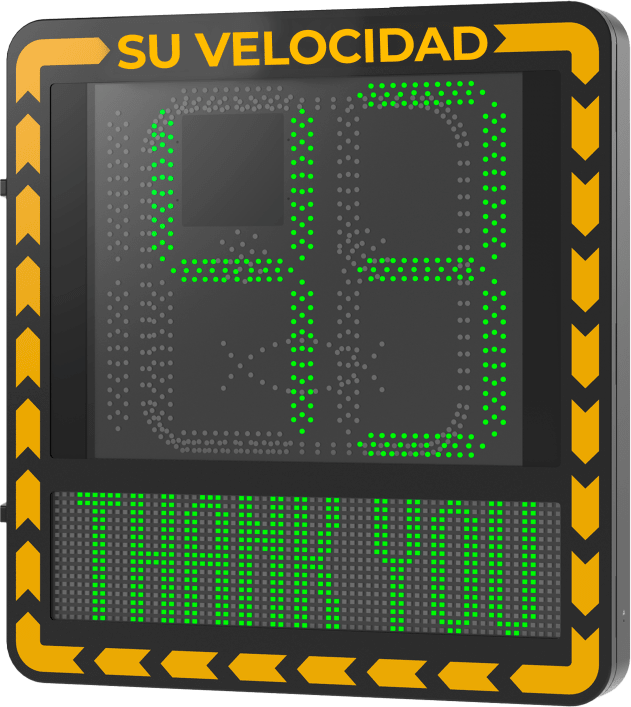 Display LED para Control de Velocidad Exterior / Distancia Visible de 100 m / LED de Alta Luminosidad y Bajo Consumo / Visualización de Velocidad con Código de Colores / IP66 / Conectividad Wi-Fi y Ethernet / Compatible con TCP/IP, HTTP, DHC