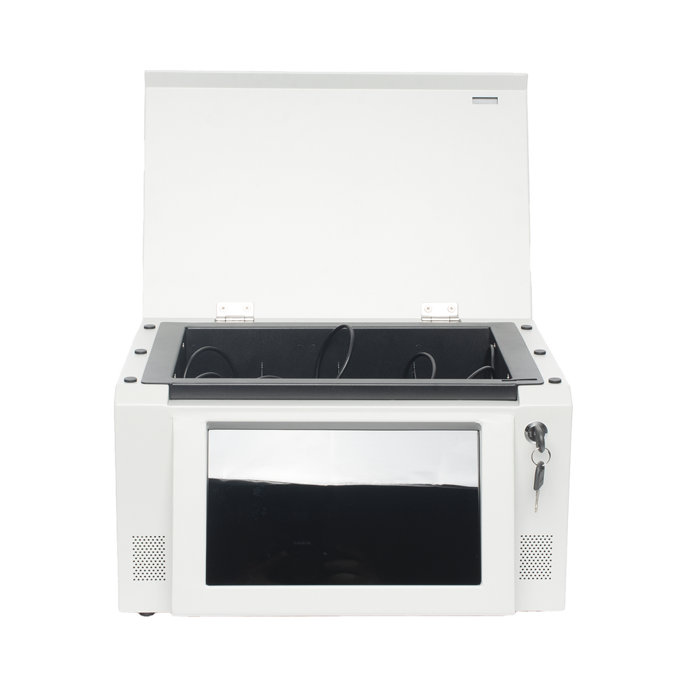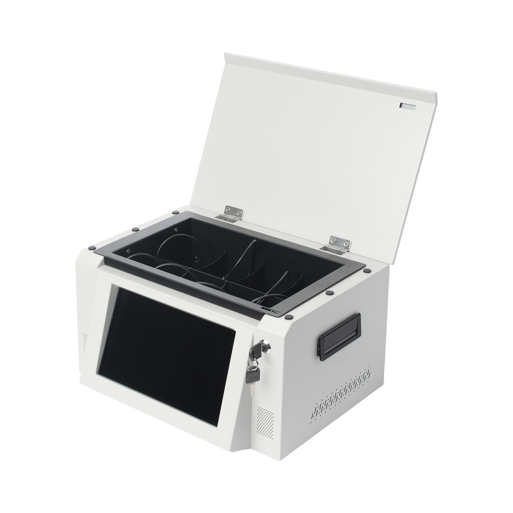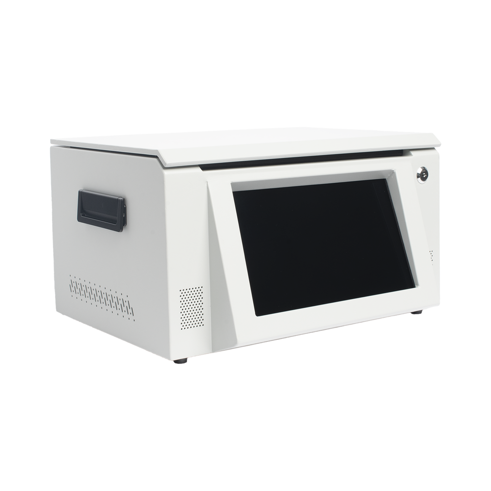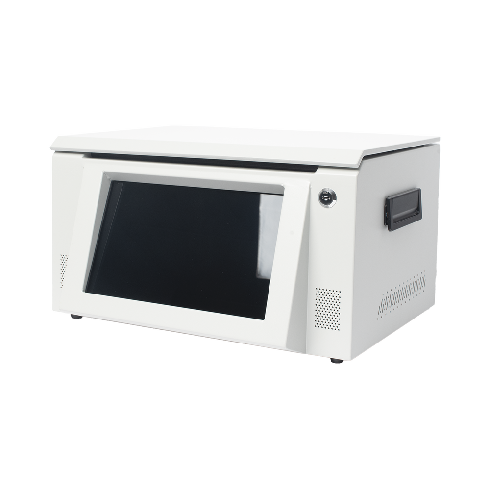 Estación para BodyCam, realiza la descarga de información y carga de batería simultáneamente, la estación se conecta por Ethernet para la descarga de información a el servidor central dedicado (FTP).