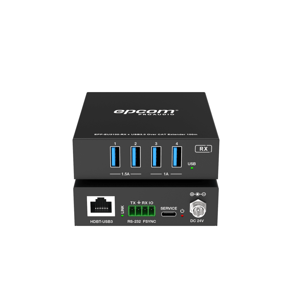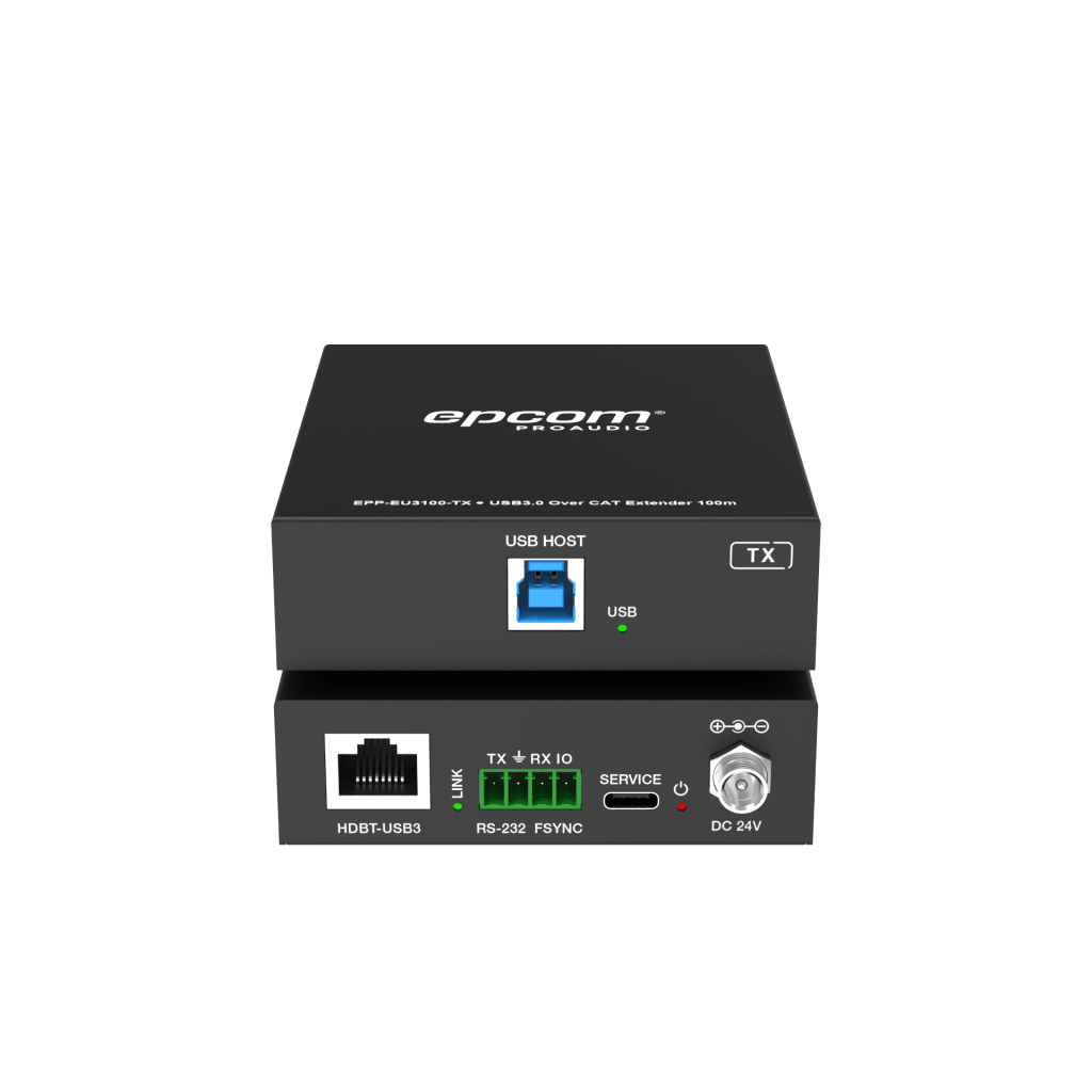 El Extensor USB 3.0 permite extender señales USB hasta 100 metros mediante un solo cable CAT6a. El transmisor cuenta con una entrada USB 3.0 Tipo B, una entrada GPIO FSYNC y paso de señal RS-232. El receptor incluye cuatro salidas USB 3.0 Tipo A, una salida GPIO FSYNC y también paso de señal RS-232. Además, es compatible con alimentación PoC bidireccional de 24 Vcc. Ideal para aplicaciones que requieren transmisión USB a larga distancia entre una PC y dispositivos periféricos.