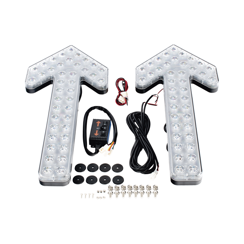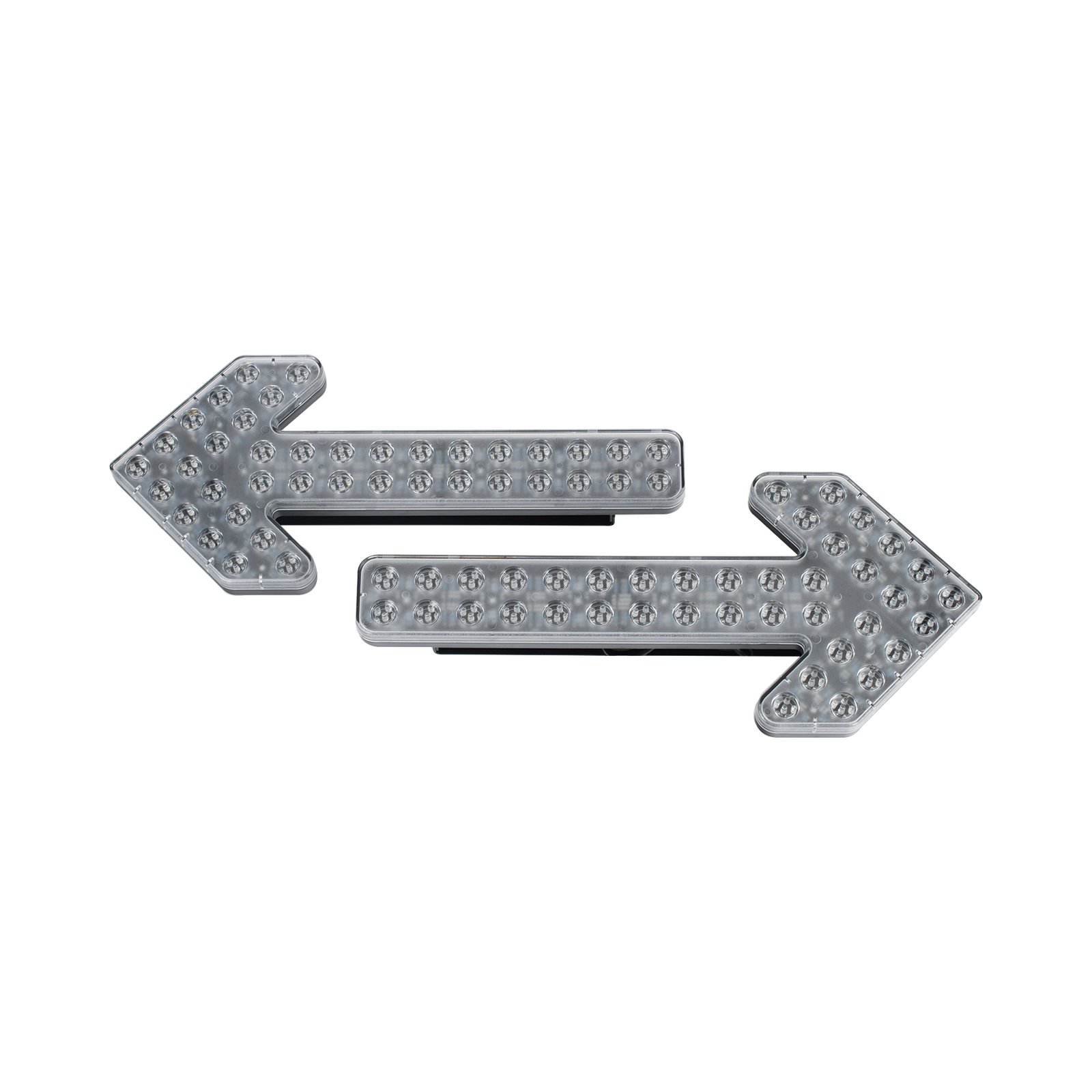 Las flechas son una advertencia direccional de alto rendimiento con los beneficios adicionales de una fuente de luz LED de bajo consumo de corriente, libre de mantenimiento y de larga duración. Cuenta con patrones de destello seleccionables a través del controlador en la cabina. La flecha de seguridad LED es la solución de iluminación de dirección de tráfico definitiva.