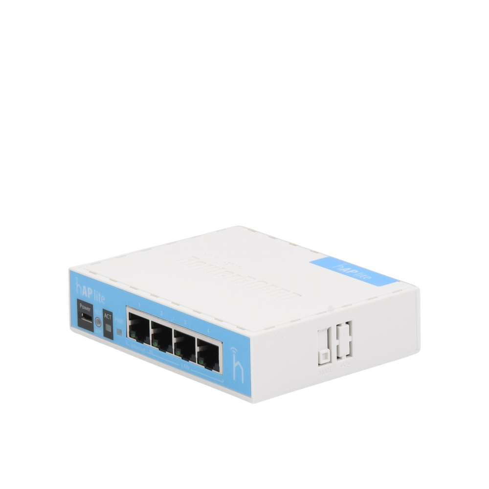 La hAP Lite está equipado con un CPU de 650 MHz, 32 MB de RAM, 2,4 GHz de doble cadena, cuatro puertos Fast Ethernet y una licencia RouterOS L4. Se incluye fuente de alimentación USB.
