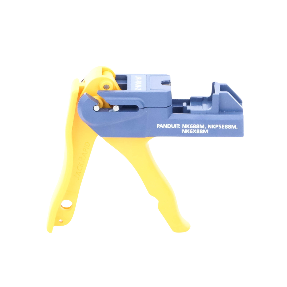 La herramienta patentada de terminación de Jacks le permite terminar los conectores 8 veces más rápido.