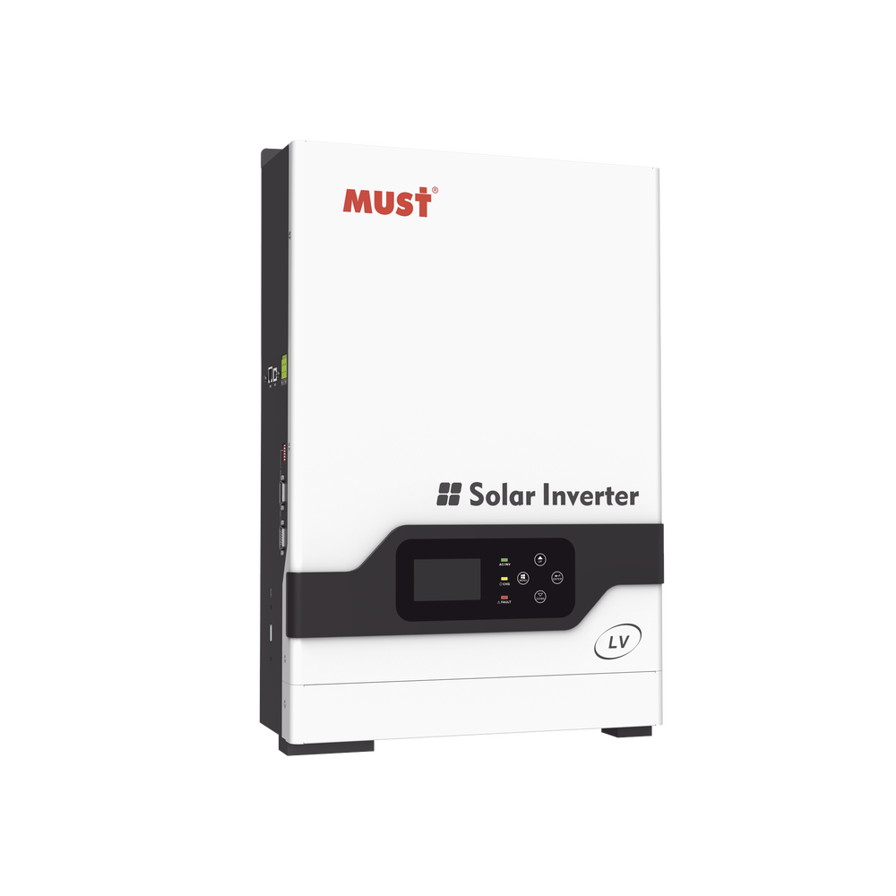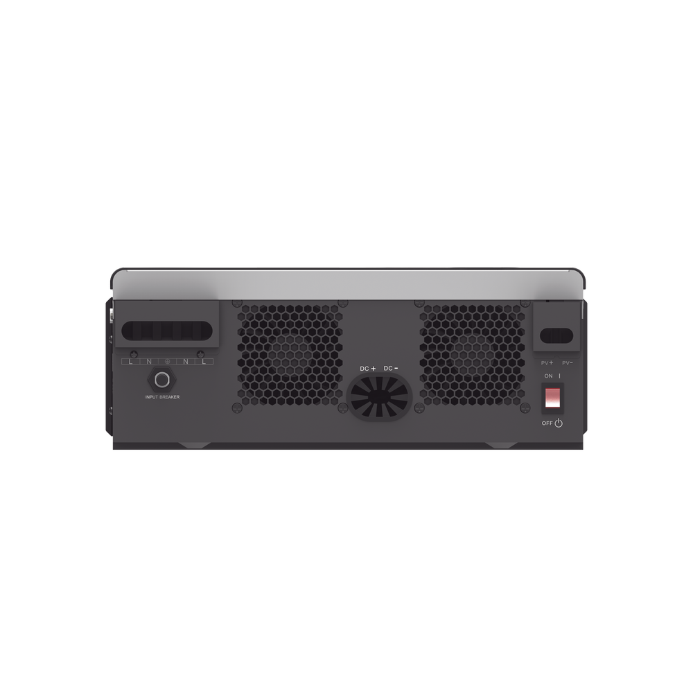 La serie PV1800 LV es un inversor/cargador multifunción que combina las funciones de inversor, cargador solar MPPT y cargador de batería para ofrecer un soporte de energía ininterrumpido en un tamaño portátil. Su pantalla LCD integral proporciona una operación fácil de usar con botones configurables, como la corriente de carga de la batería, la prioridad del cargador de CA/solar y el voltaje de entrada aceptable según diferentes aplicaciones.