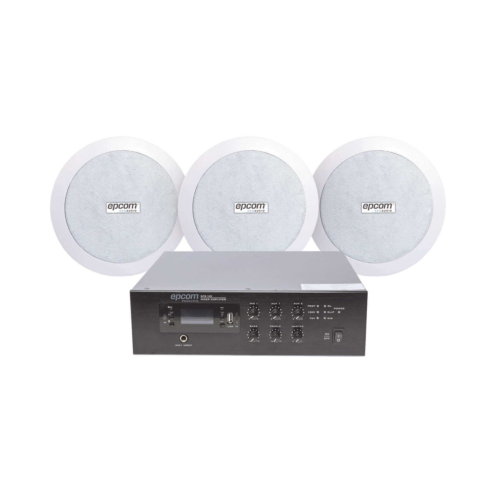 KIT de Amplificador de 120W para Escritorio | 3 Altavoces de Plafón de 5.5in | 3.75 – 30W | Sistema 70/100V