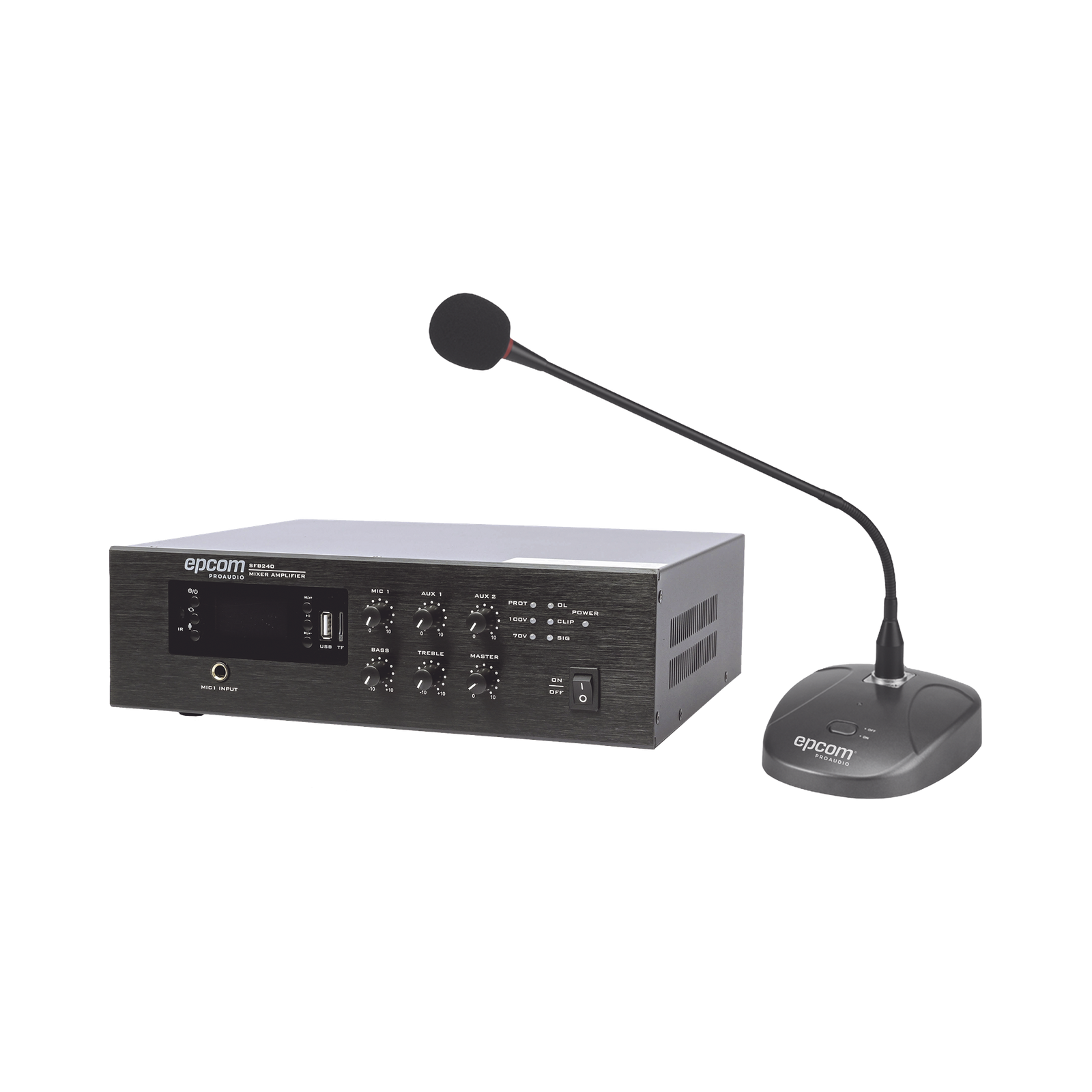 KIT de Amplificador de Audio de 240W Modelo SFB240 | más Micrófono de Escritorio Modelo SF621A
