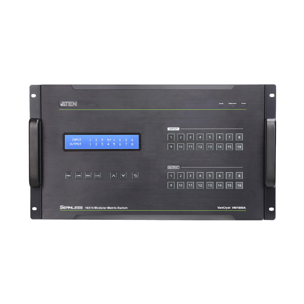 La serie de soluciones de matriz modular de ATEN, como el switch VM1600A/VM3200, permite gestionar hasta 16/32 fuentes y pantallas de vídeo simultáneamente en un único chasis. Destacando la tecnología Seamless Switch™, ofrece conmutación de vídeo progresiva y un escalador único para integrarse con sistemas de pared de vídeo. Ideal para aplicaciones a gran escala, como emisoras y salas de control, la solución es fácilmente ampliable y facilita la redirección de señales de A/V personalizables de alta velocidad. Con un diseño cómodo e intuitivo, la interfaz gráfica de usuario premiada con el Red Dot permite un control y distribución audiovisual de alta calidad desde cualquier lugar a través de la red o Internet.