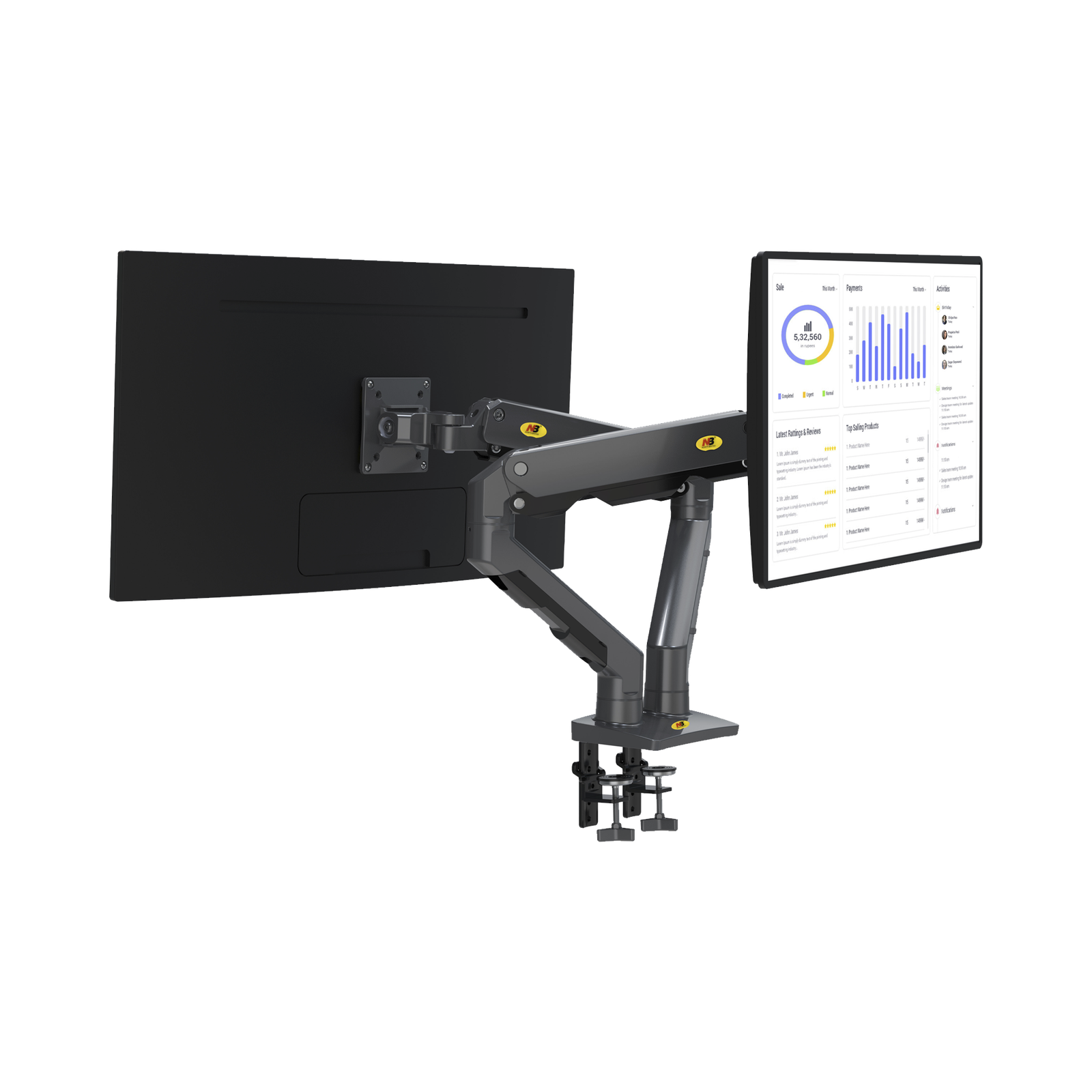 Montaje de Escritorio articulado para 2 monitores de 27-34″ / Soporta hasta 16 kg por brazo/ Vesa 75 x 75 / 100 x 100 / Acero / Giro: 360°