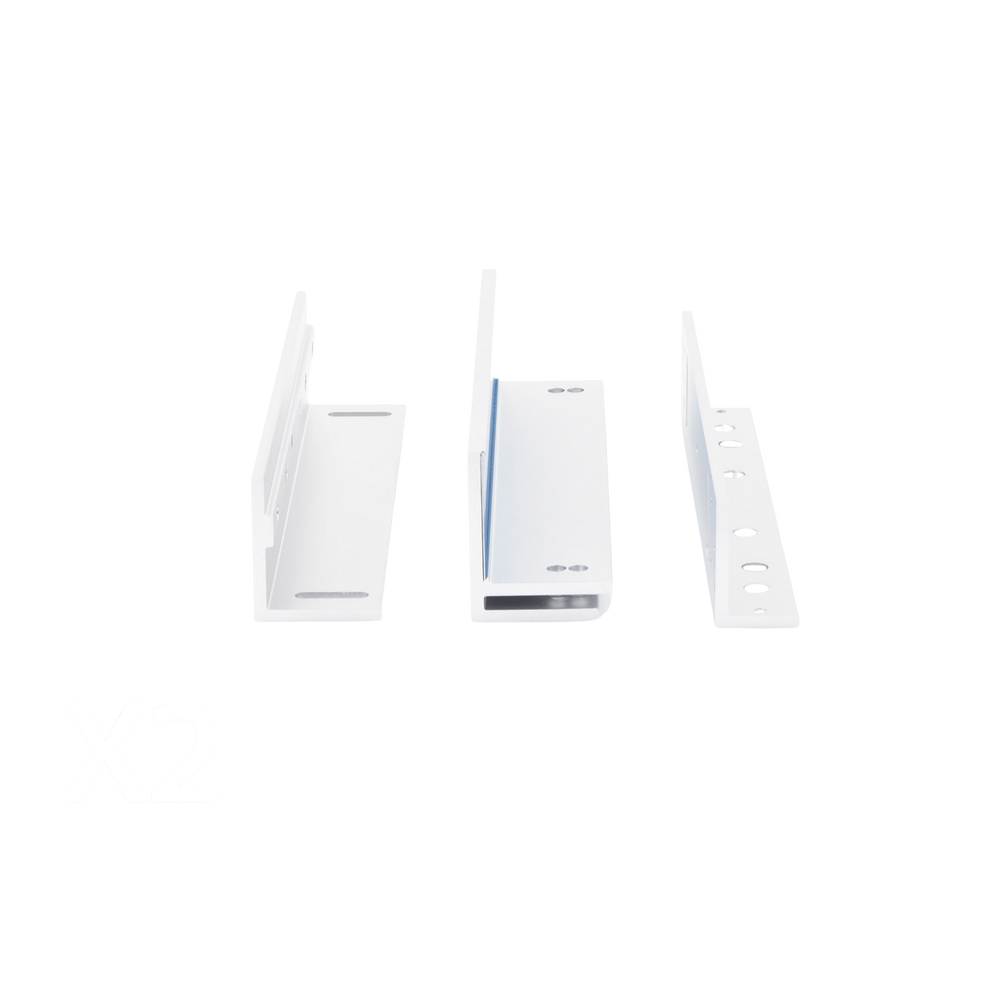 Incluye un soporte en «Z» y un soporte en «L» para montar en puertas batientes. El soporte «Z» consta de dos partes y es ajustable para un posicionamiento flexible de la placa del inducido. También incluye una placa de cubierta para ocultar los tornillos de montaje.