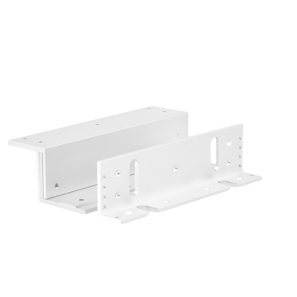 Este sistema de montaje está diseñado específicamente para la cerradura electromagnética de 1200 libras E-941SA-1200, asegurando una instalación segura y precisa. Los soportes ajustables permiten adaptarse a diversas situaciones de instalación, mientras que la construcción en aluminio anodizado proporciona durabilidad y resistencia a la corrosión.