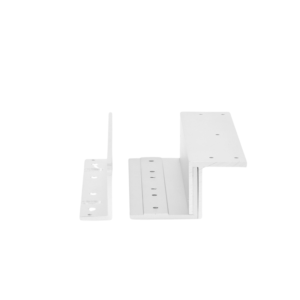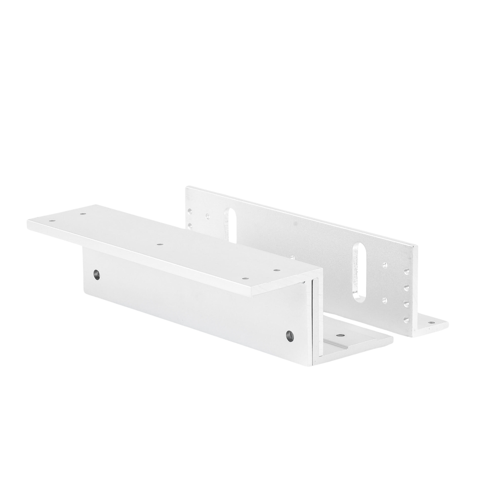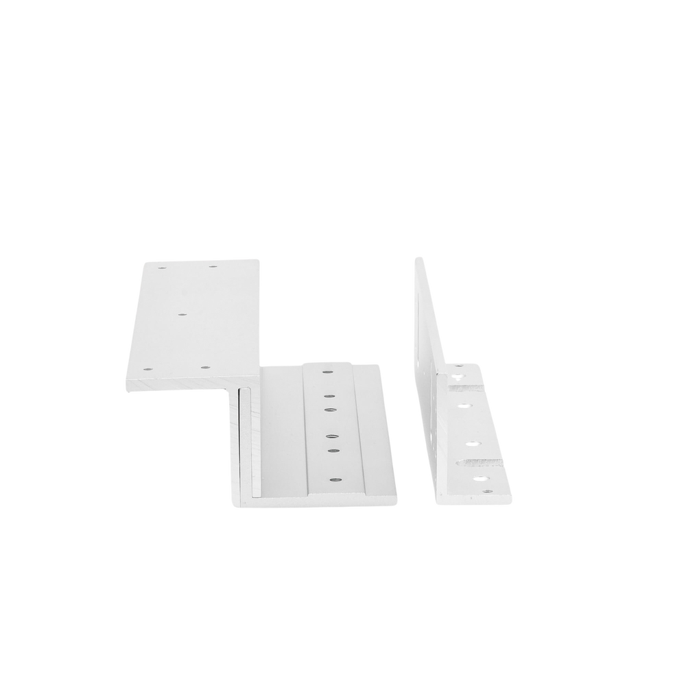 El soporte tipo Z y L para chapa E-941SA-1200 es un sistema de montaje diseñado para facilitar la instalación de cerraduras electromagnéticas en puertas interiores. El soporte tipo Z, compuesto por dos partes, permite un posicionamiento flexible de la placa de inducido, mientras que el soporte tipo L ofrece una solución alternativa para diferentes configuraciones de montaje. Ambos soportes vienen con placa de cubierta para ocultar los tornillos de montaje, proporcionando una apariencia limpia y profesional.