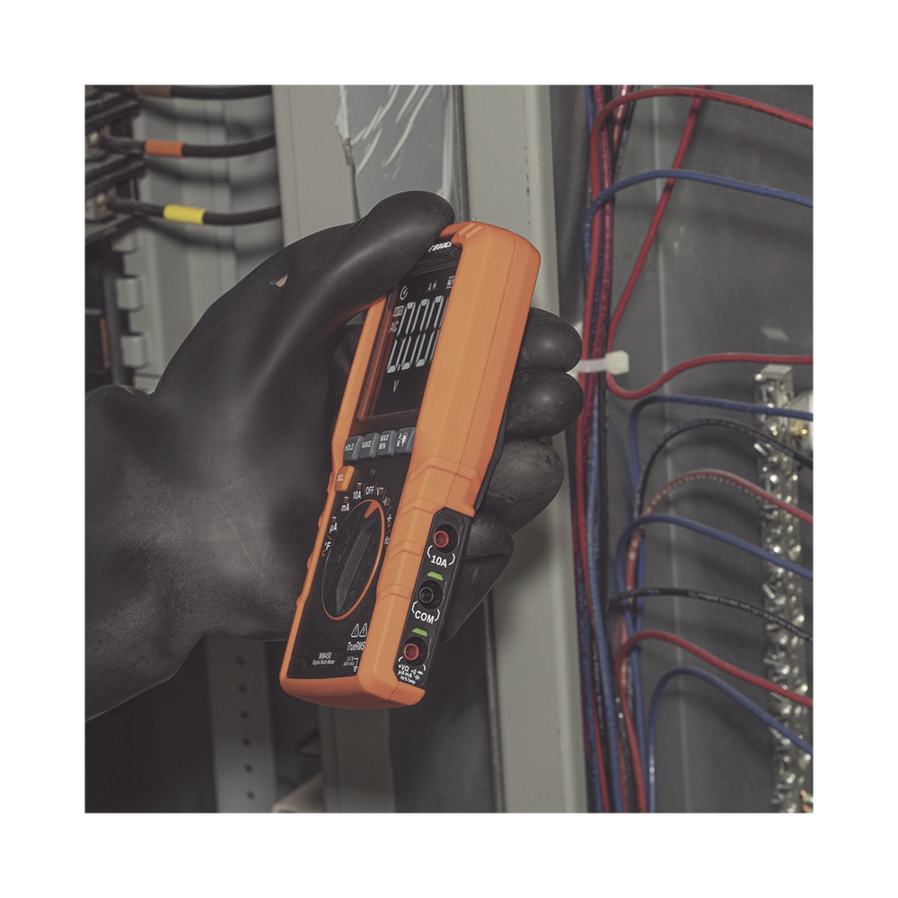 - Multímetro con tecnología de rango automático con media cuadrática real (TRMS) que ofrece mayor precisión