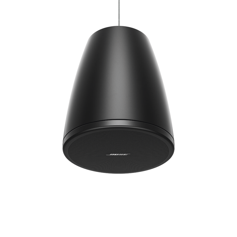 El DM3P es un altavoz colgante que cuenta con un sistema de suspensión empotrado de un solo punto que ofrece una apariencia elegante y atractiva y está disponible en negro o blanco.