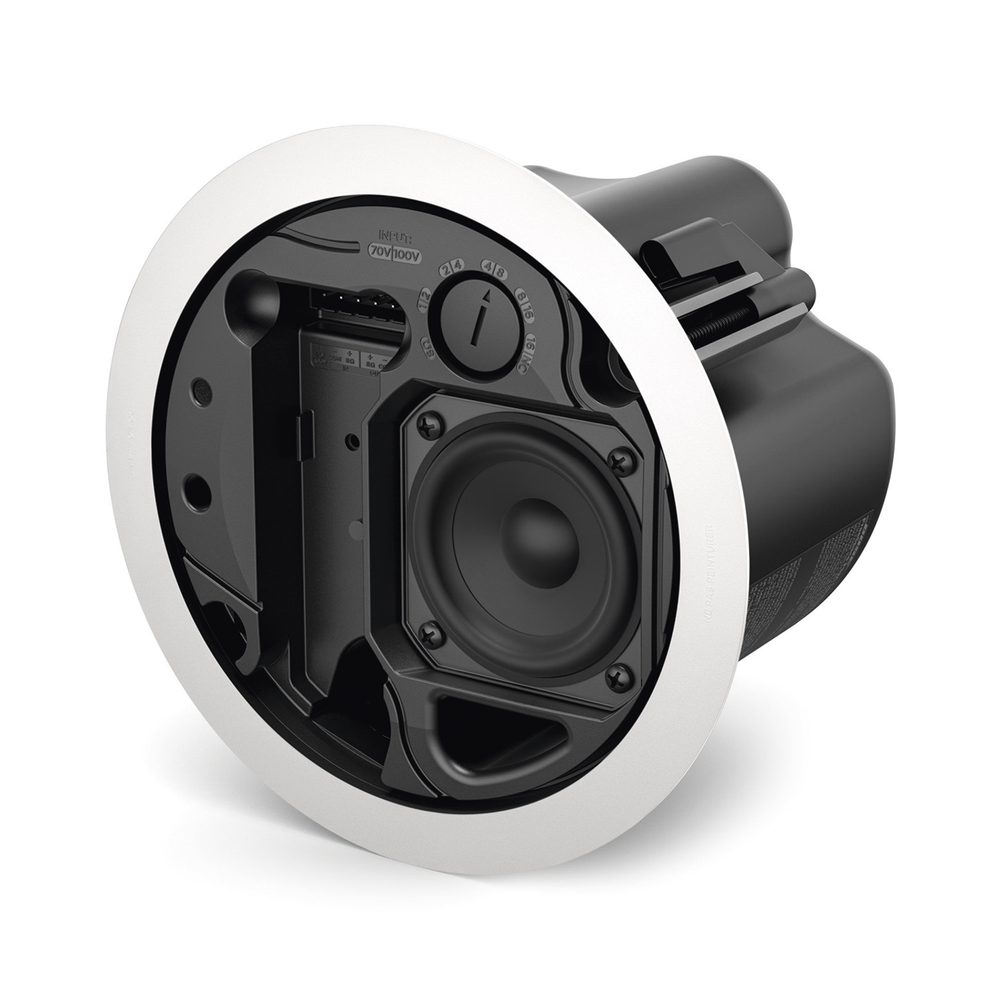 El FS2CW es un modelo para montaje en techo con un transductor de rango completo de 57 mm (2.25′), rango de baja frecuencia de hasta 83 Hz y una sensibilidad de 86 dB SPL/1 W a 1 m.