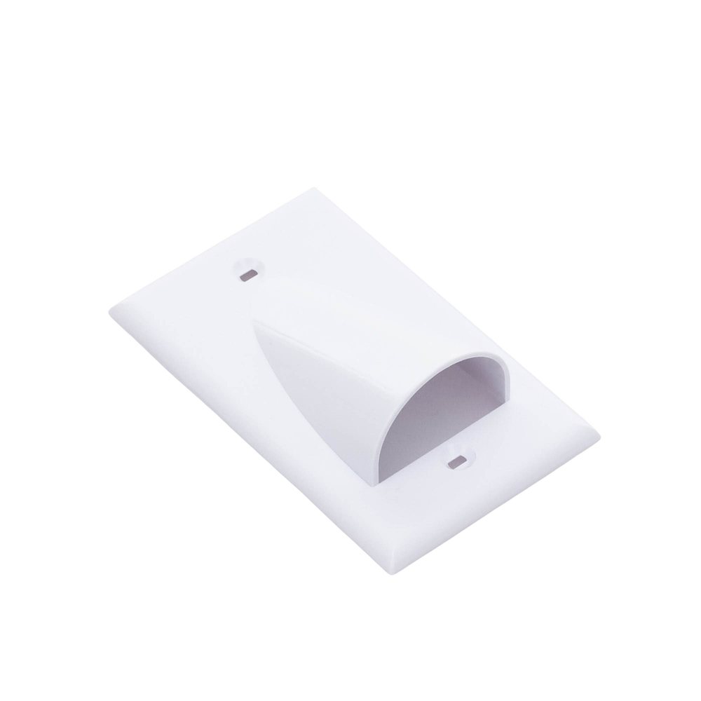 Placa de pared pasa muros con accesorios para su perfecta instalación. Diseñada para cables delgados con dimensiones compactas para espacios reducidos.