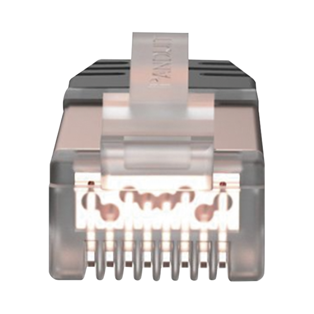 El Plug modular blindado de Categoría 6A/Clase EA, de 8 posiciones y 8 hilos, se puede terminar en cable de par trenzado blindado sólido o trenzado Panduit de 4 pares, 23-24 AWG, de 100 ohms con un diámetro máximo de aislamiento del conductor de 0.047 pulg. (1.19 mm) y diámetro máximo de forro de 0.300 pulg. (7.62 mm).