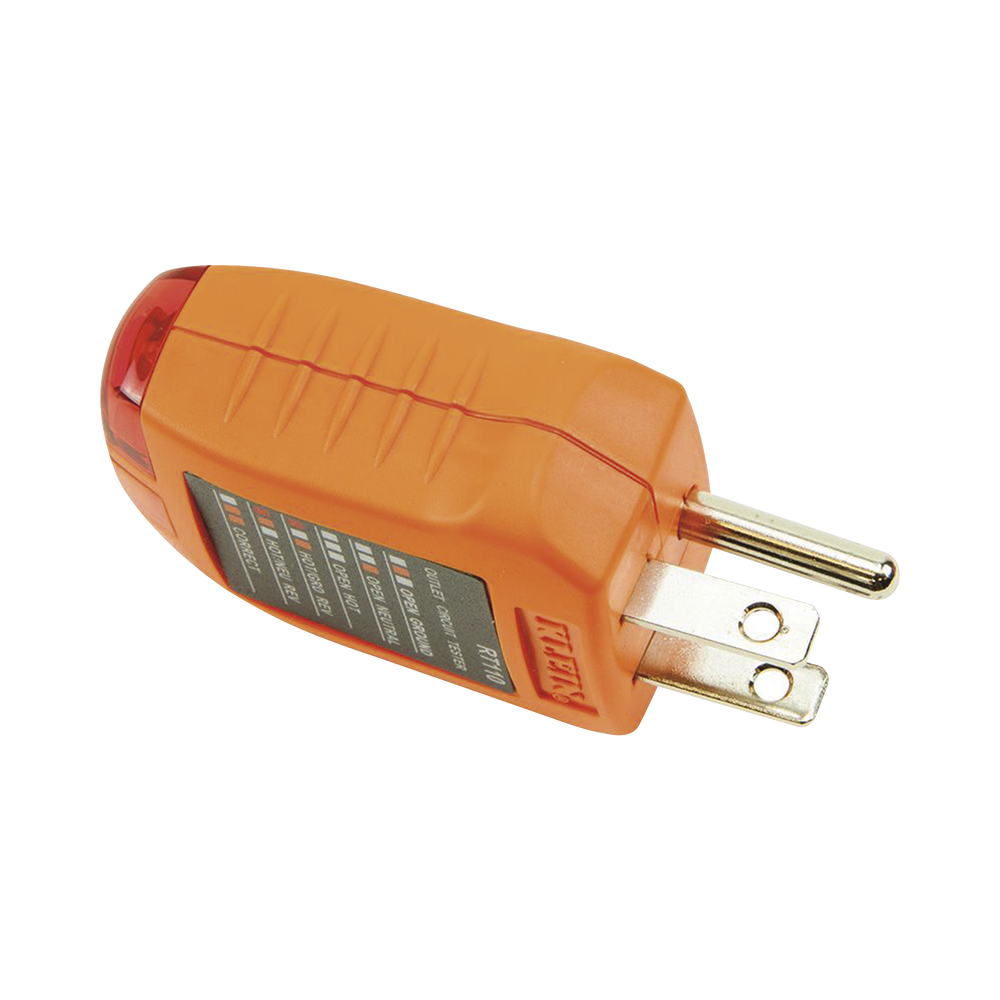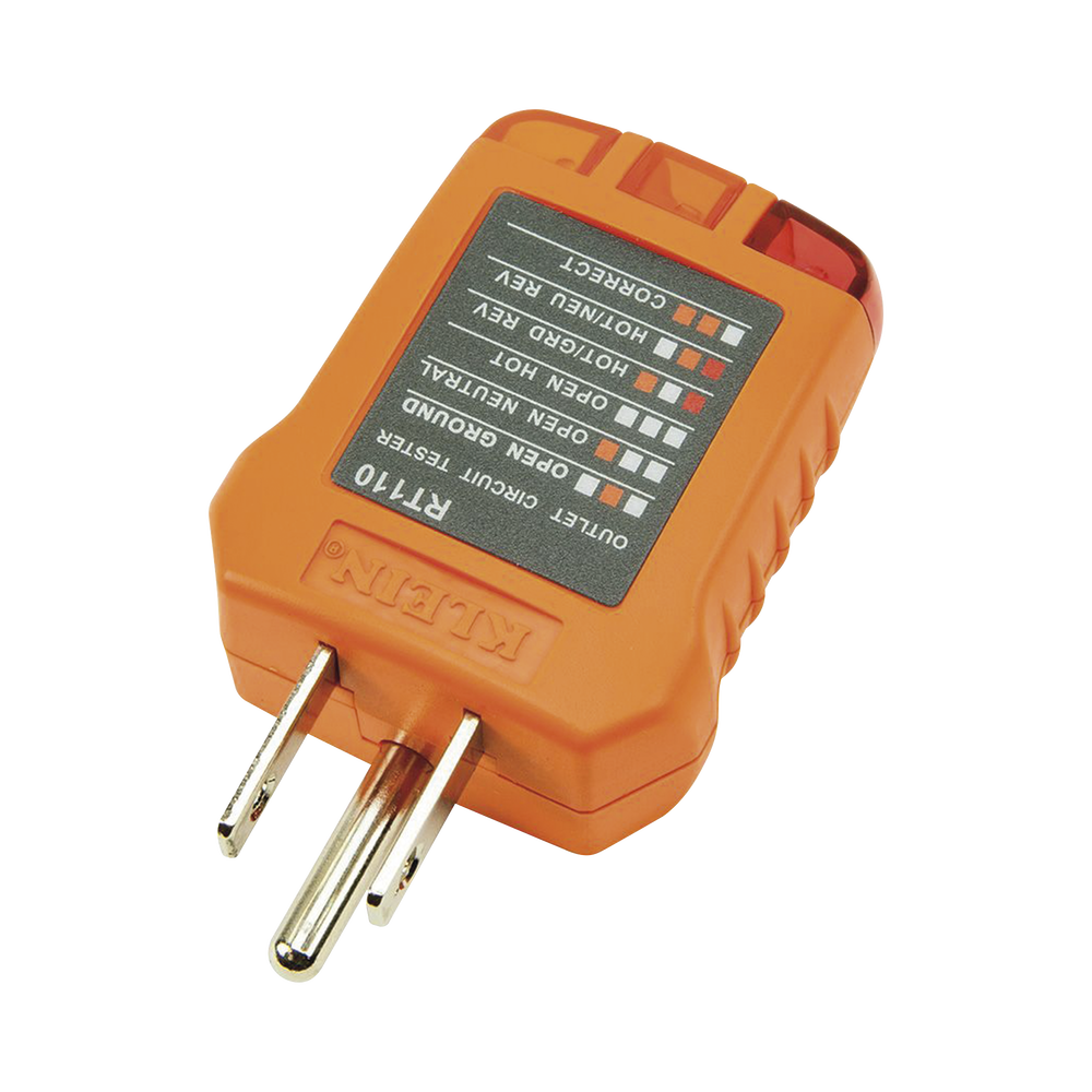 El probador de tomacorrientes Klein Tools RT110 detecta los problemas de cableado más comunes en tomacorrientes estándar.