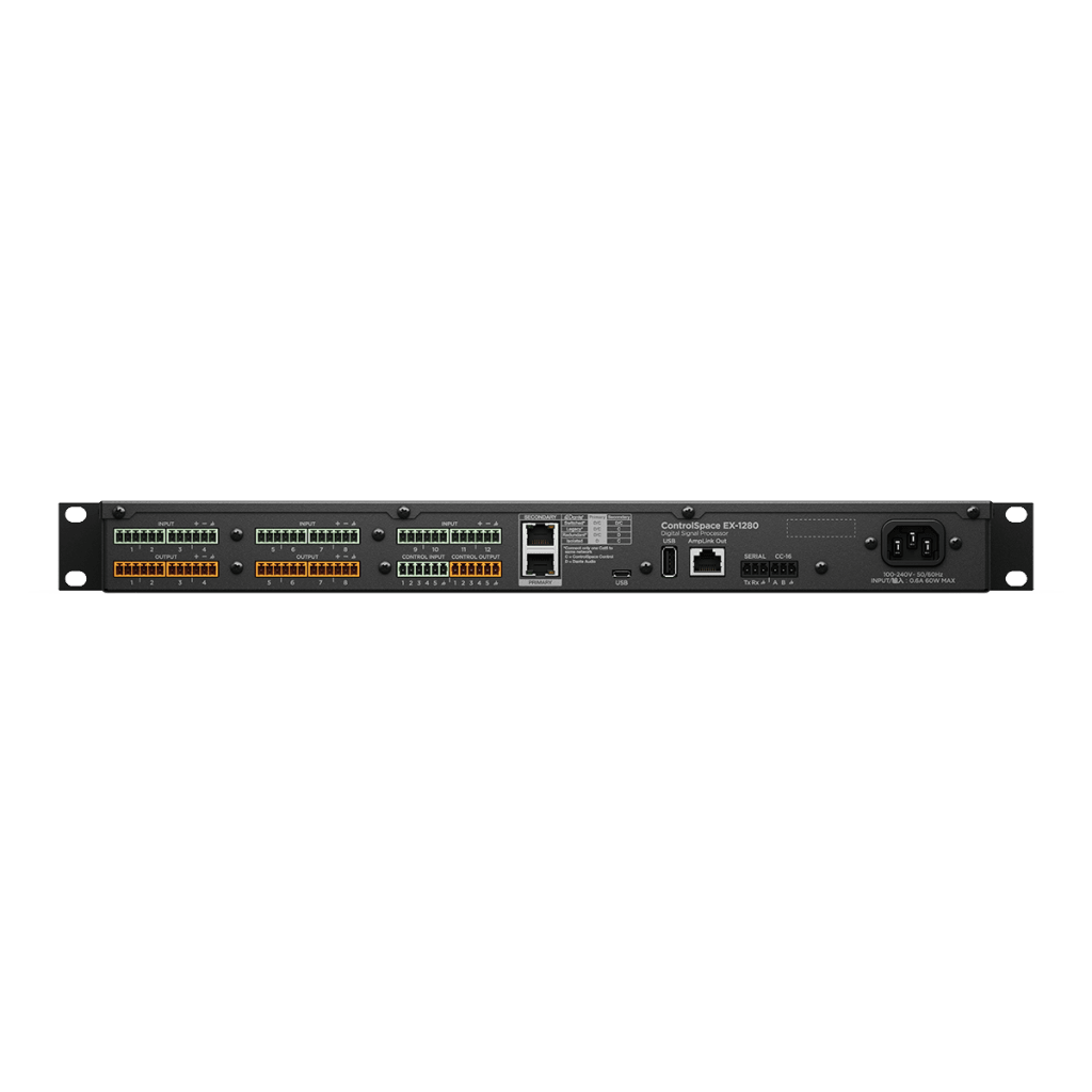 Con un diseño de unidad de rack única y arquitectura abierta, el ControlSpace EX-1280 es un robusto procesador de señales digitales, equipado para aplicaciones de procesamiento de audio de propósito general.